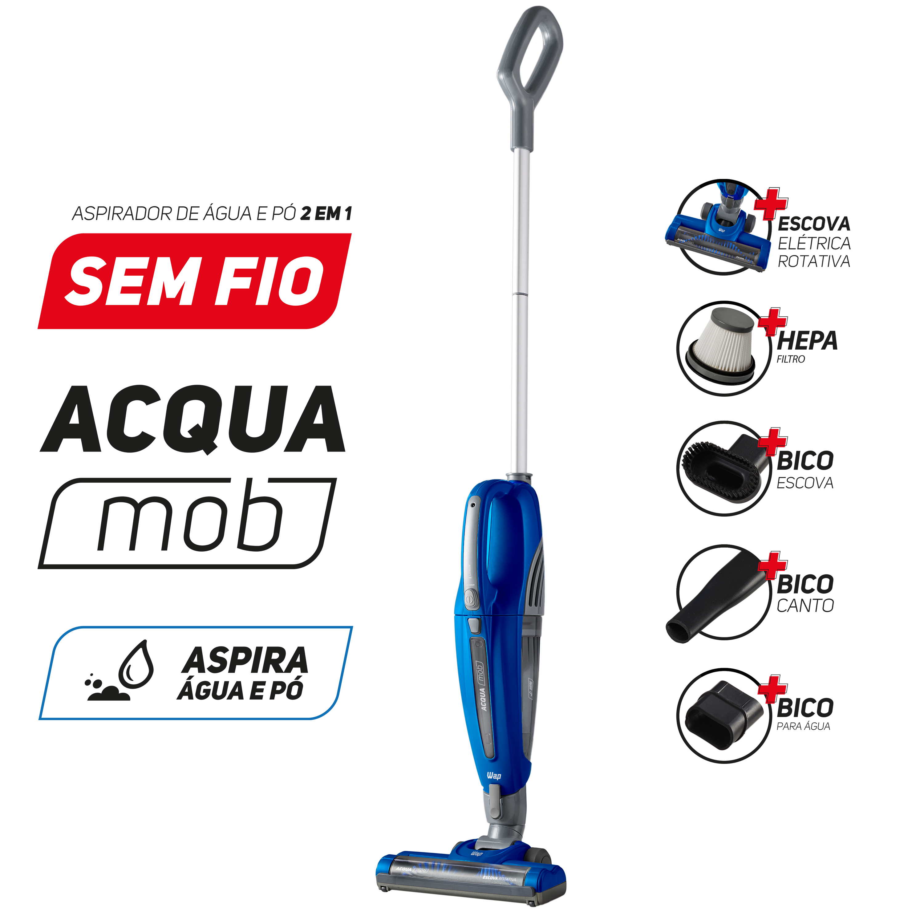 O Aspirador de Água e Pó Sem Fio WAP ACQUA MOB 2 em 1 é o produto ideal para quem busca autonomia e eficiência para limpar os mais diversos tipos de sujeira sólida, úmida ou líquida. Livre-se de cabos e fios que te amarram e ganhe mais flexibilidade na hora da limpeza!