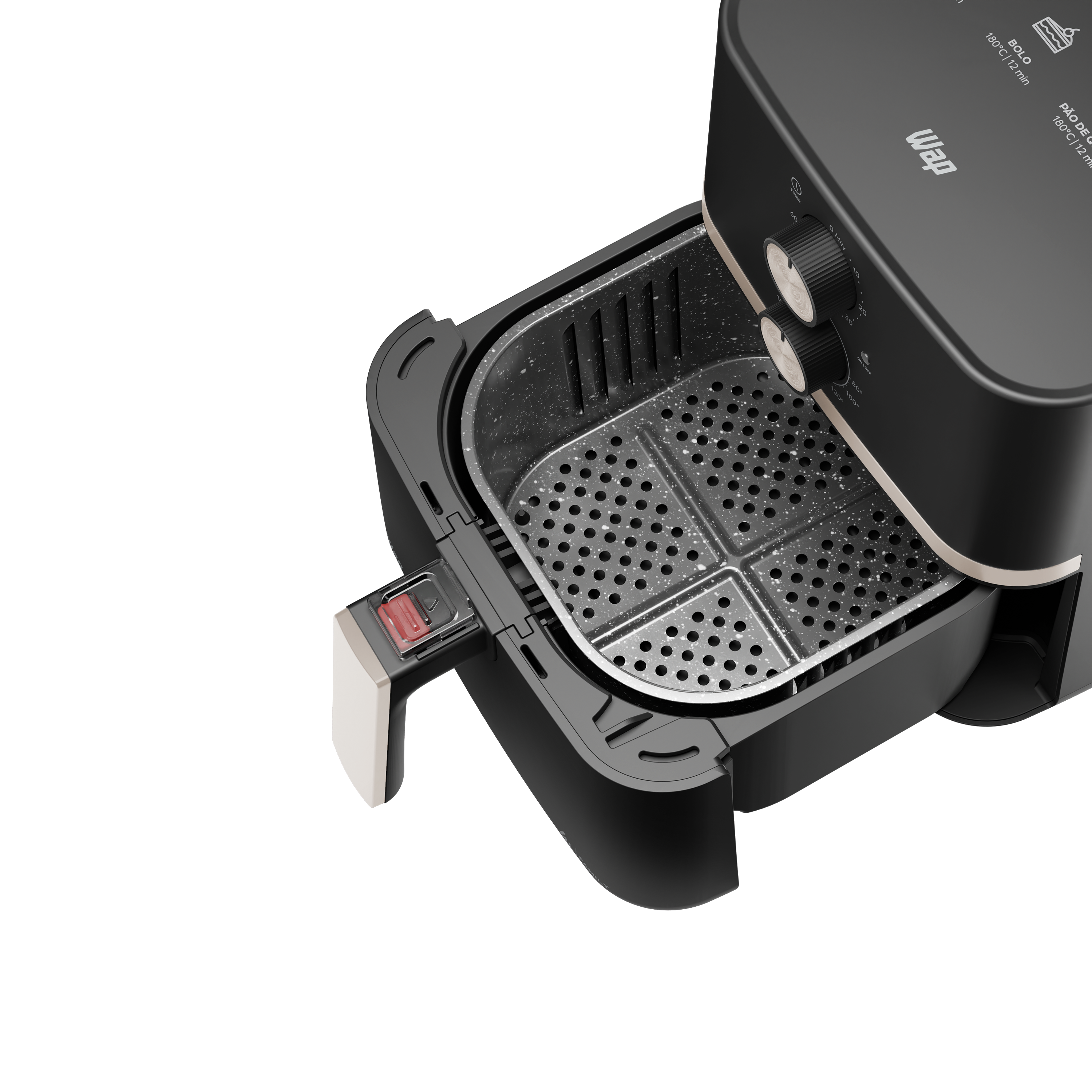 - Com 1500W de potência, a Fritadeira Elétrica WAP AirFry Family prepara receitas deliciosas de forma rápida, mesmo em grandes quantidades.