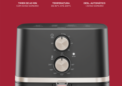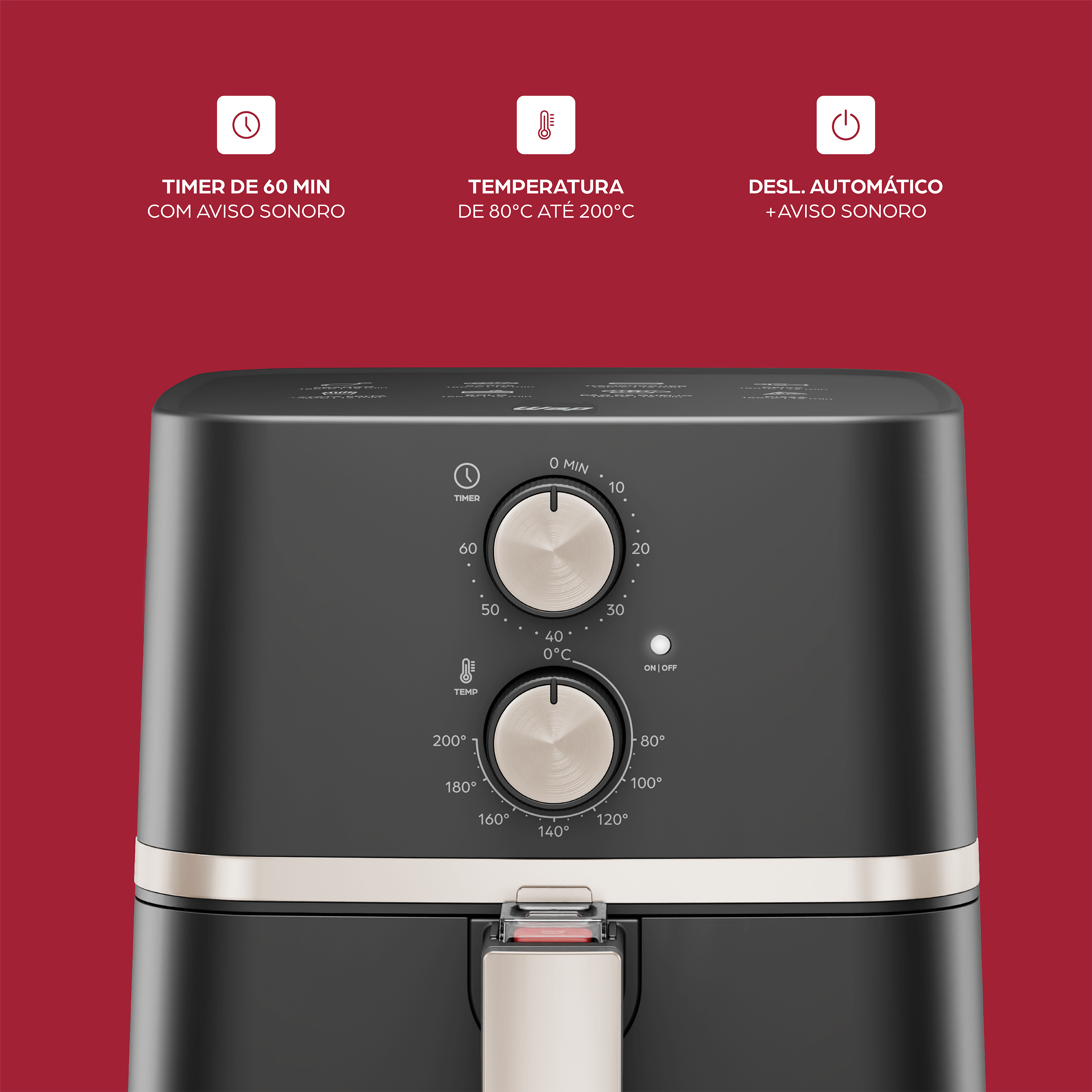 - Encontre a temperatura ideal com a botão ajustável para preparar suas receitas, que varia de 80°C a 200°.