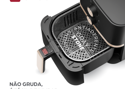 O destaque fica por conta do duplo revestimento antiaderente GrayStone, que aumenta a durabilidade do cesto, e garante que os alimentos não grudem e, o melhor de tudo, proporciona uma limpeza sem esforço e muito mais tempo para desfrutar da sua culinária com quem você gosta.