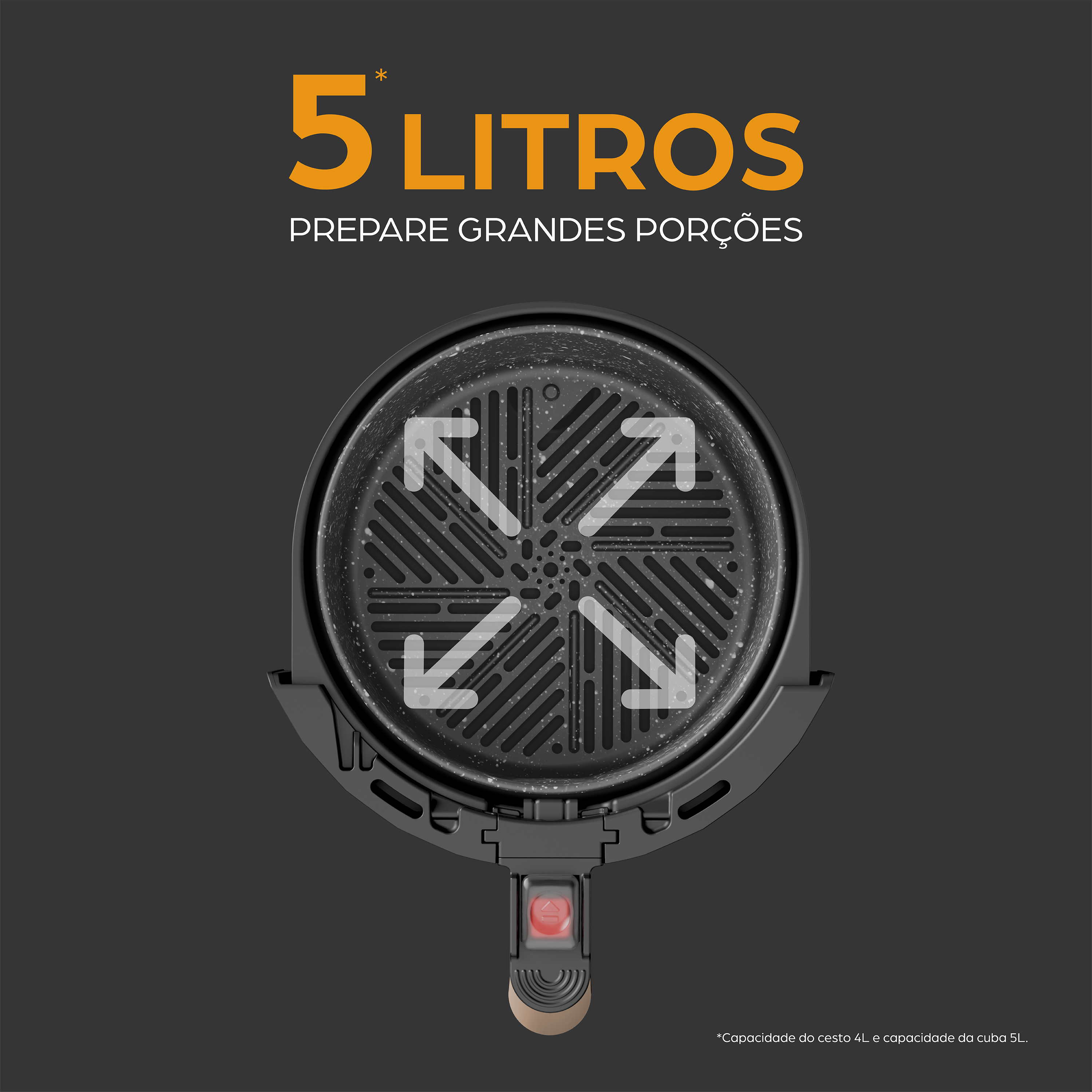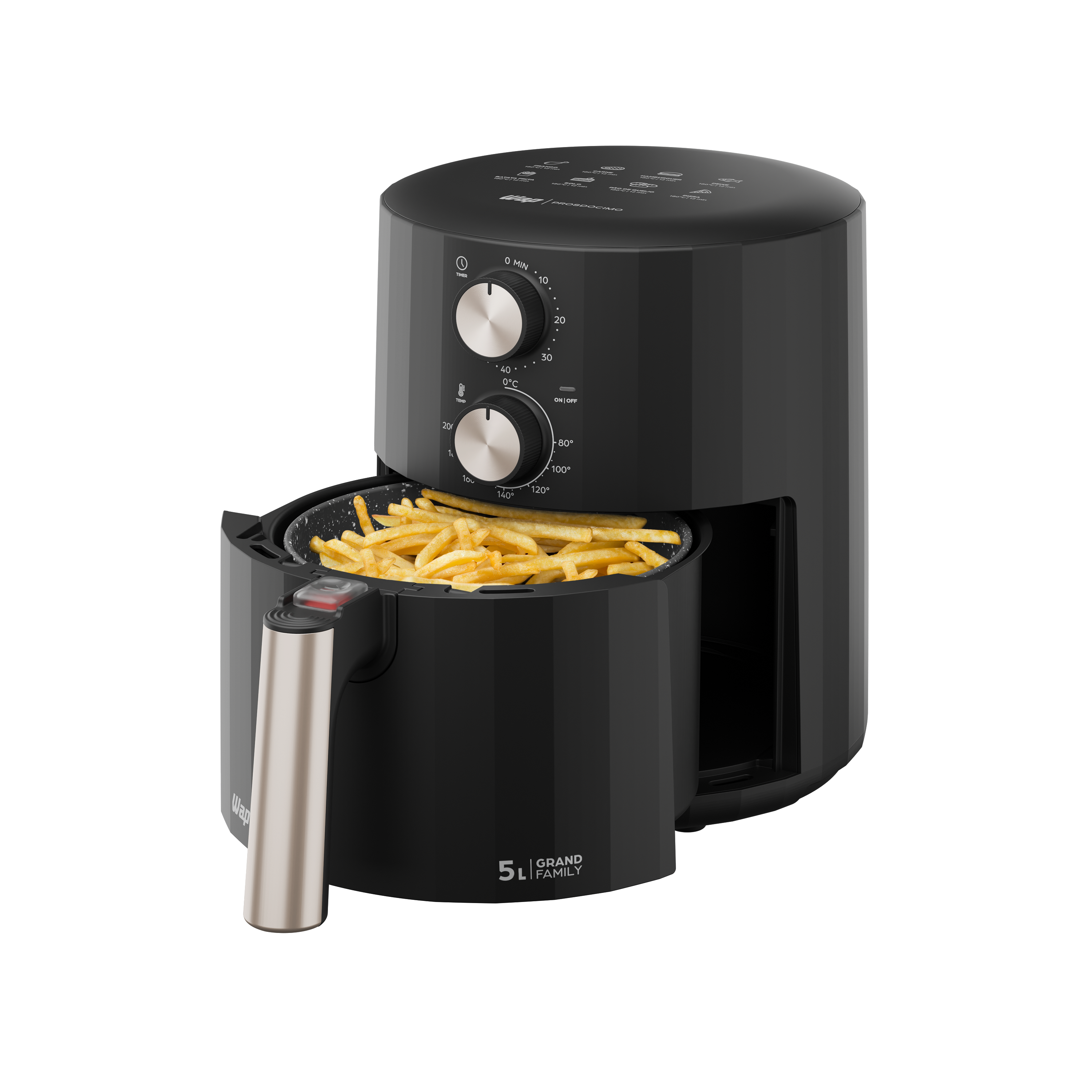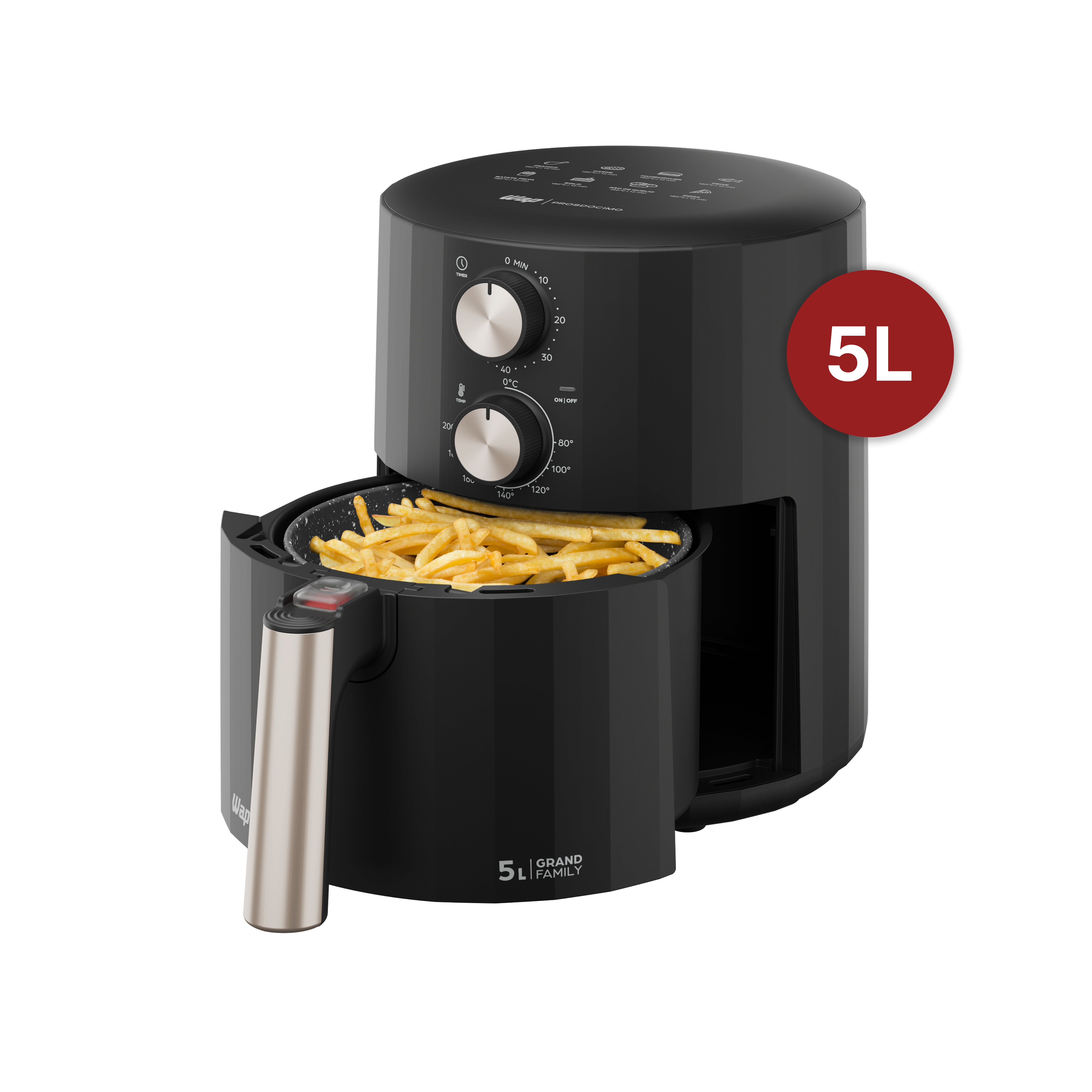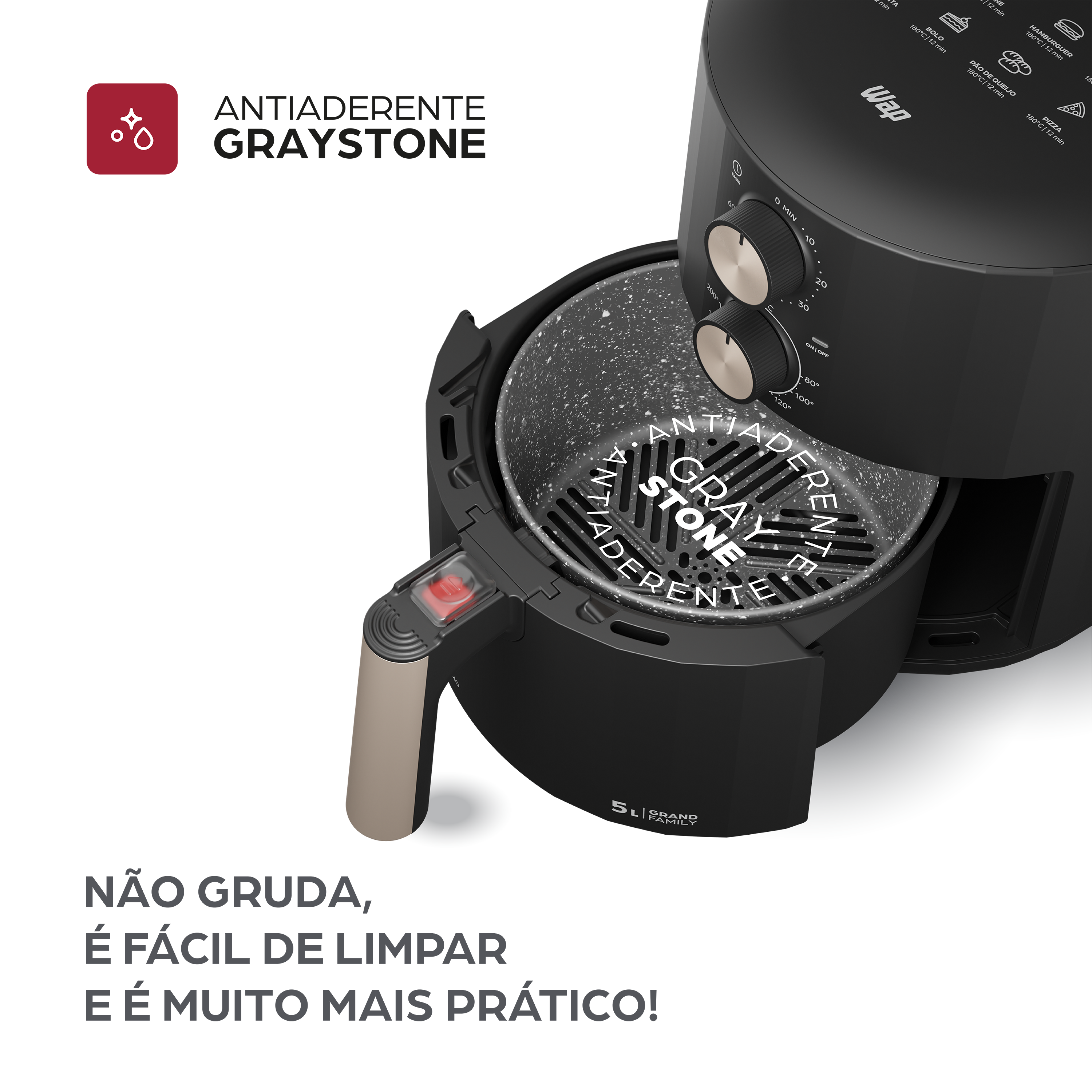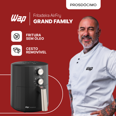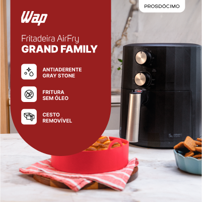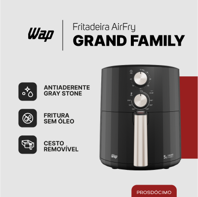 - A Fritadeira AirFry Grand Family WAP possui uma cuba de 5 litros. Ideal para preparar porções maiores das suas receitas favoritas.