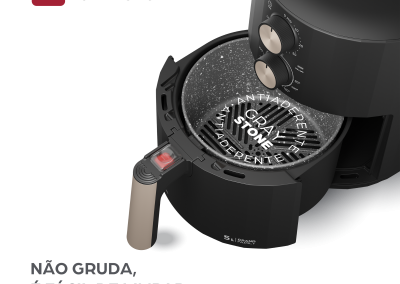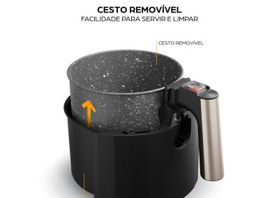 Com o cesto removível, você tem mais praticidade na hora de retirar e servir o alimento. Além disso, conta com duplo revestimento de antiaderente GrayStone, que aumenta a durabilidade do cesto, e garante que os alimentos não grudem e, o melhor de tudo, proporciona uma limpeza sem esforço e muito mais tempo para desfrutar da sua culinária com quem você gosta.