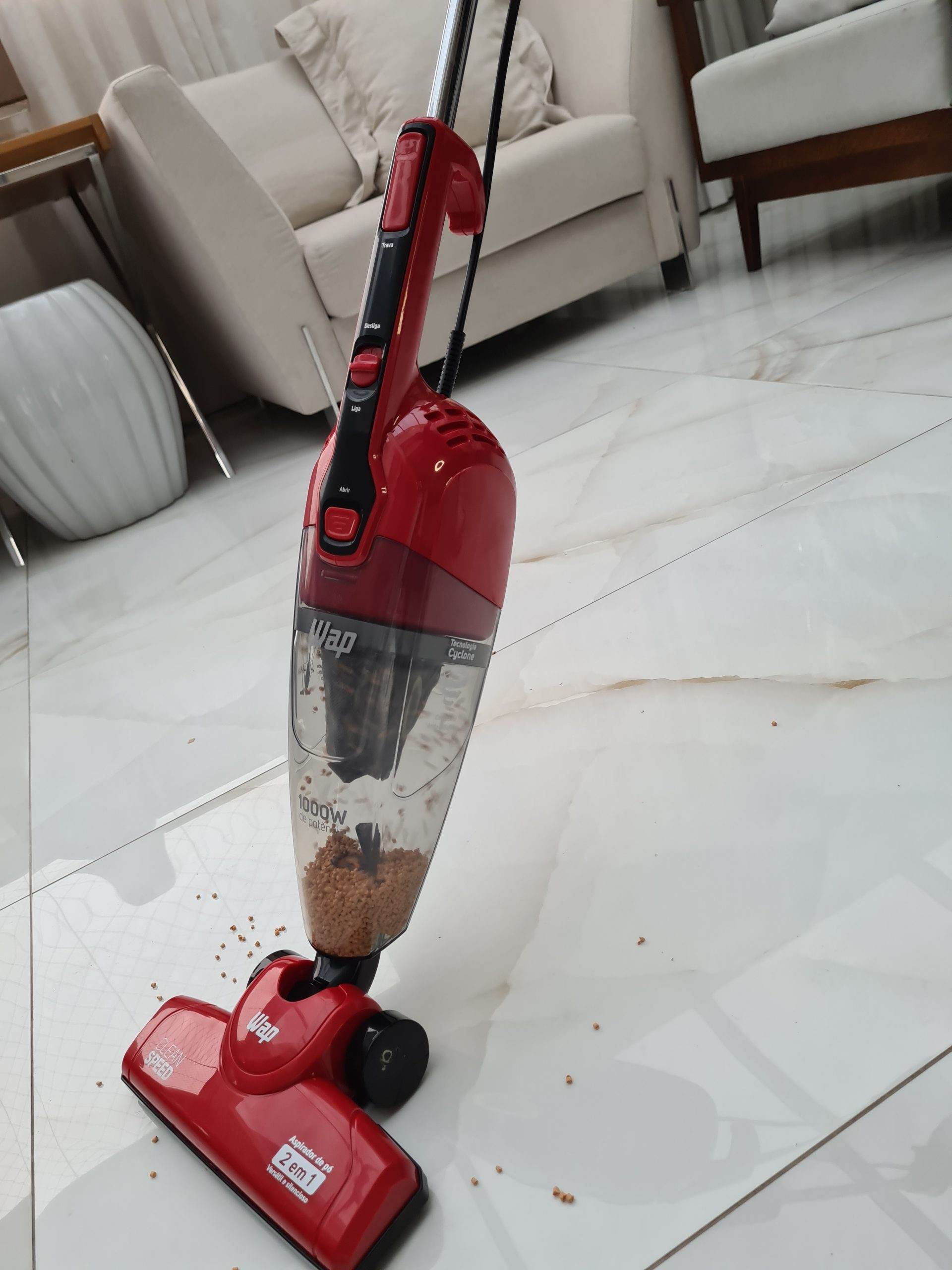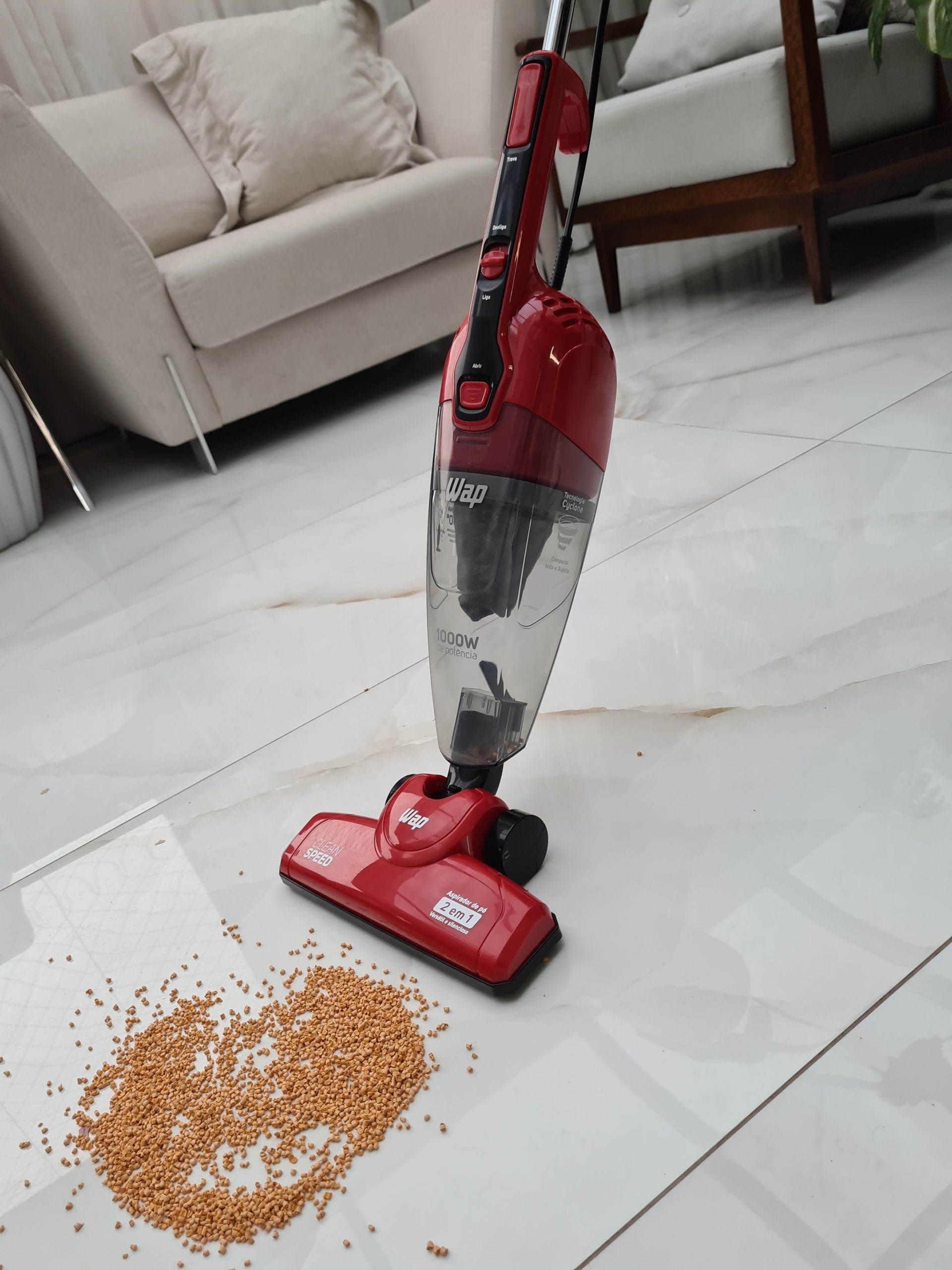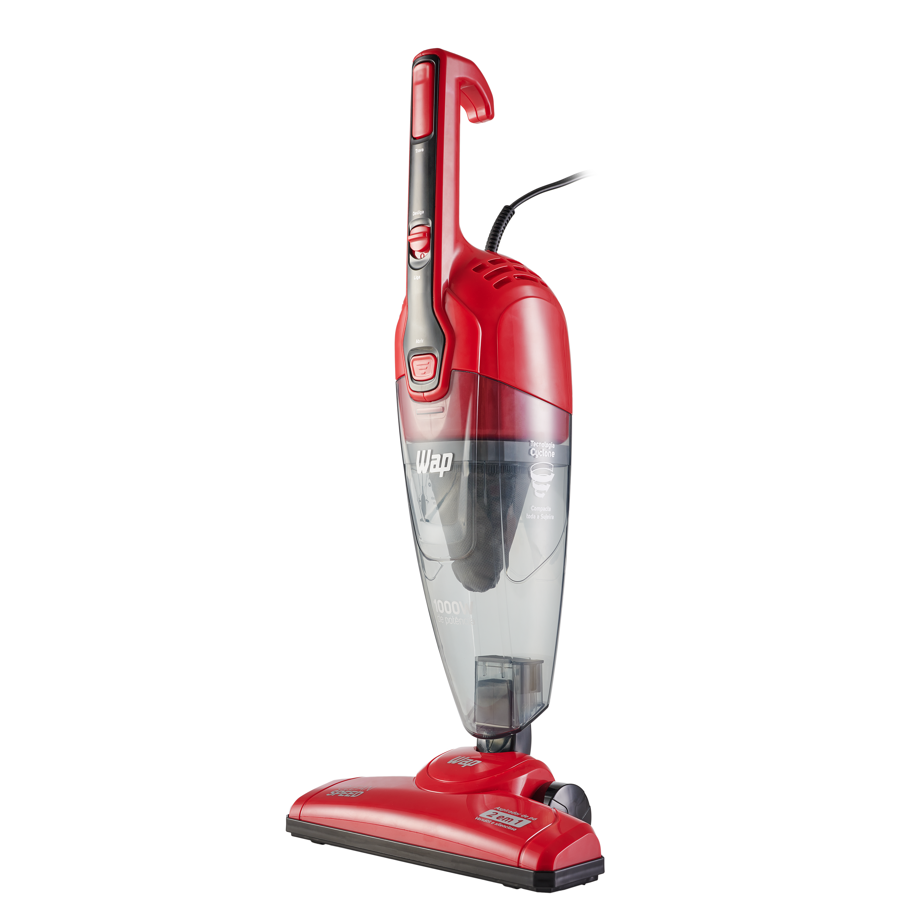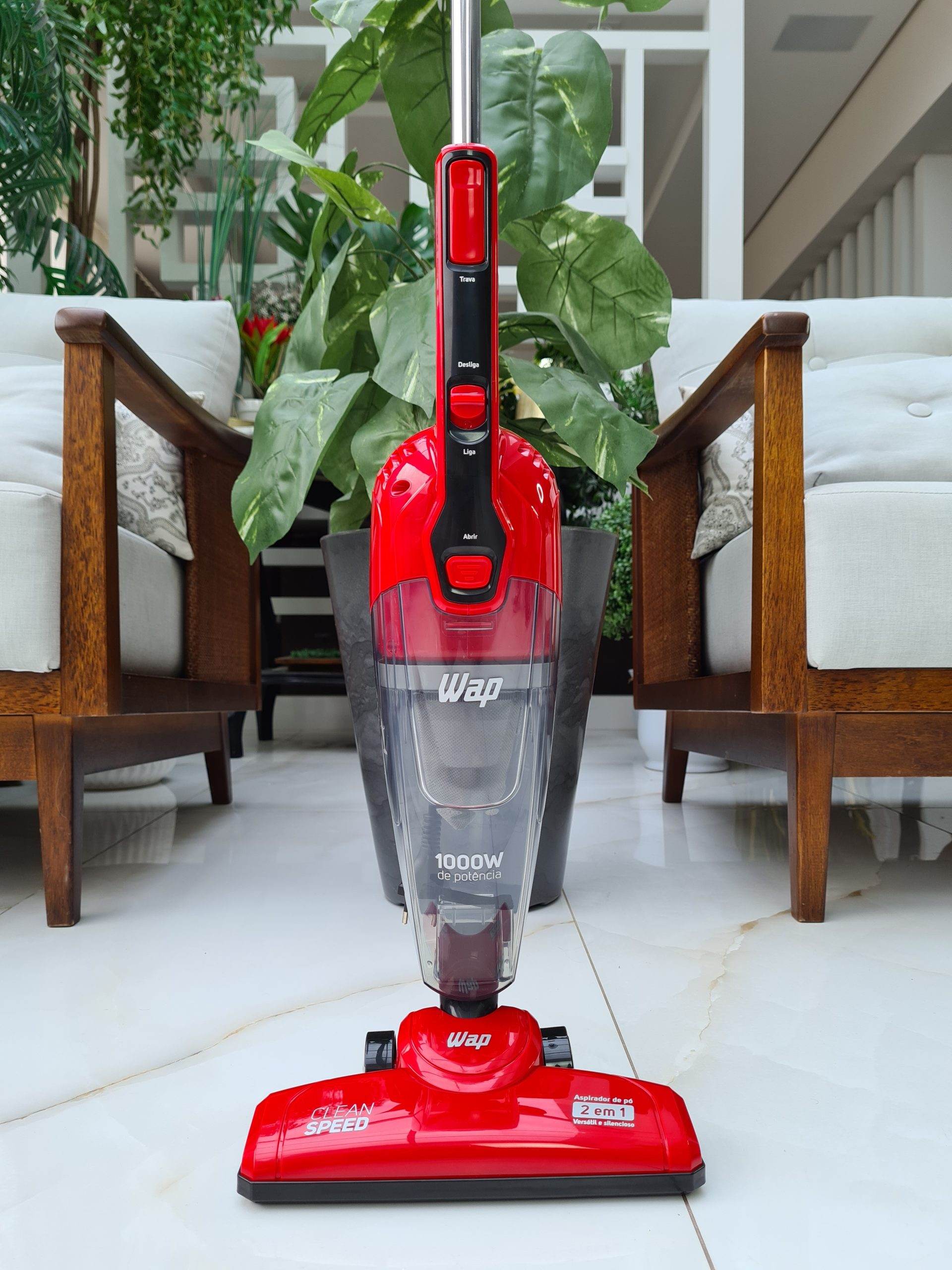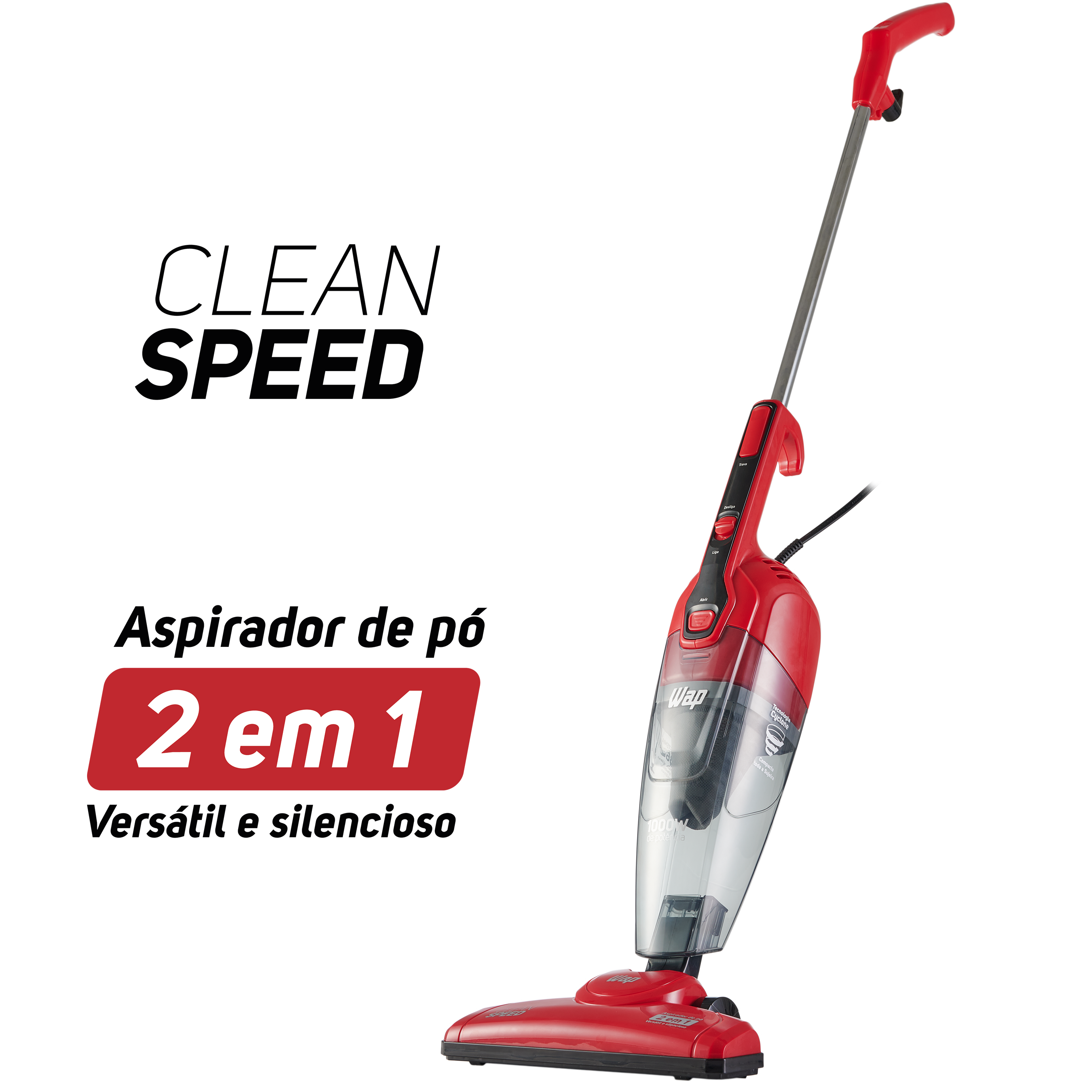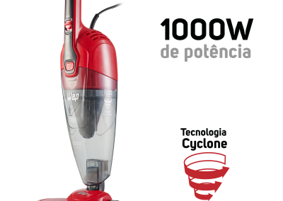 Versátil e prático, o WAP Clean Speed é o melhor aspirador de pó vertical para o seu dia a dia. Leve e portátil, ele possui 1000W de potência e é um produto 2 em 1, pode ser utilizado no formato vertical ou como aspirador de mão. Além disso, a tecnologia cyclone aumenta o seu poder de sucção e faz com que a sujeira seja aspirada com muito mais eficiência.