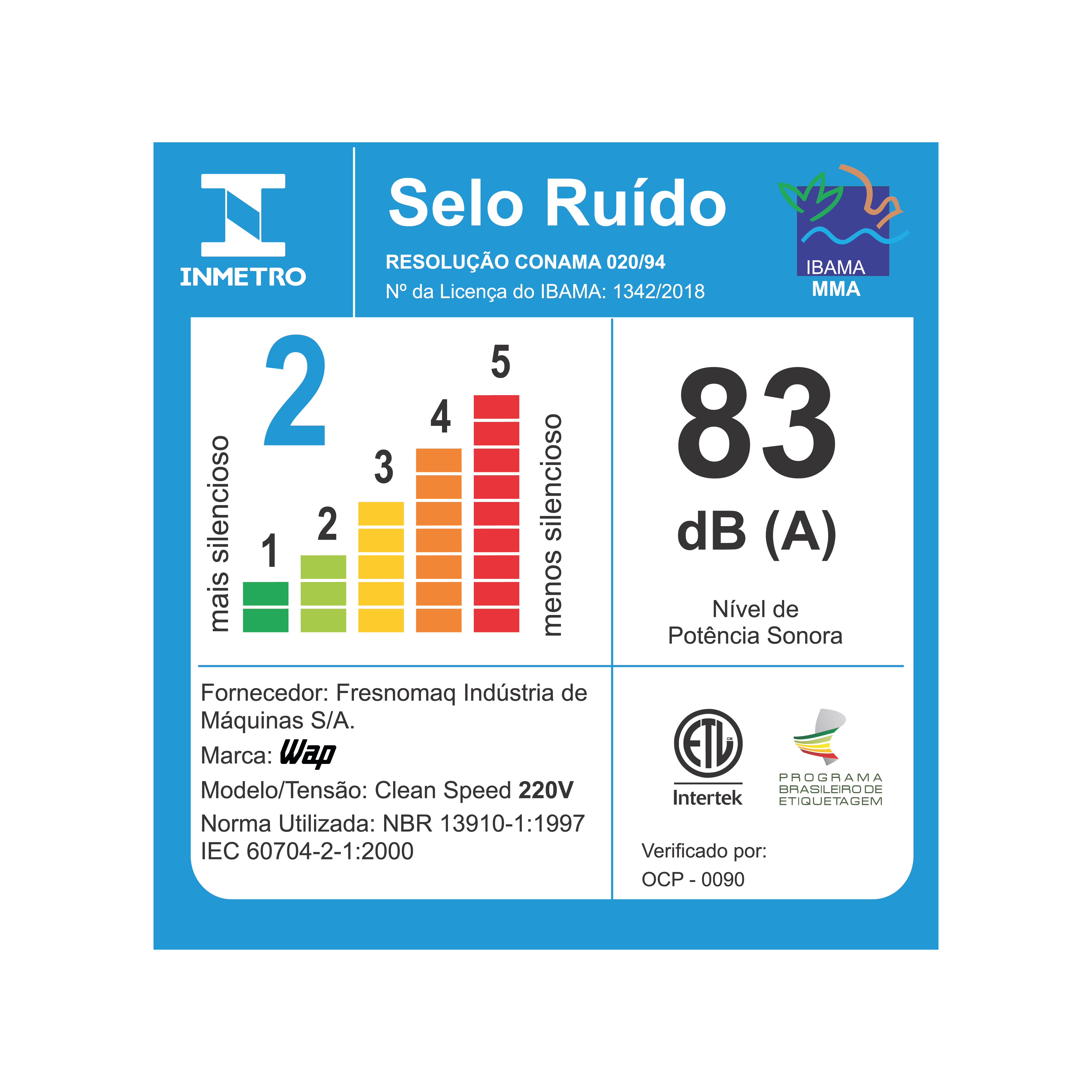 | NÍVEL DE RUÍDO: | 83 db(A) |