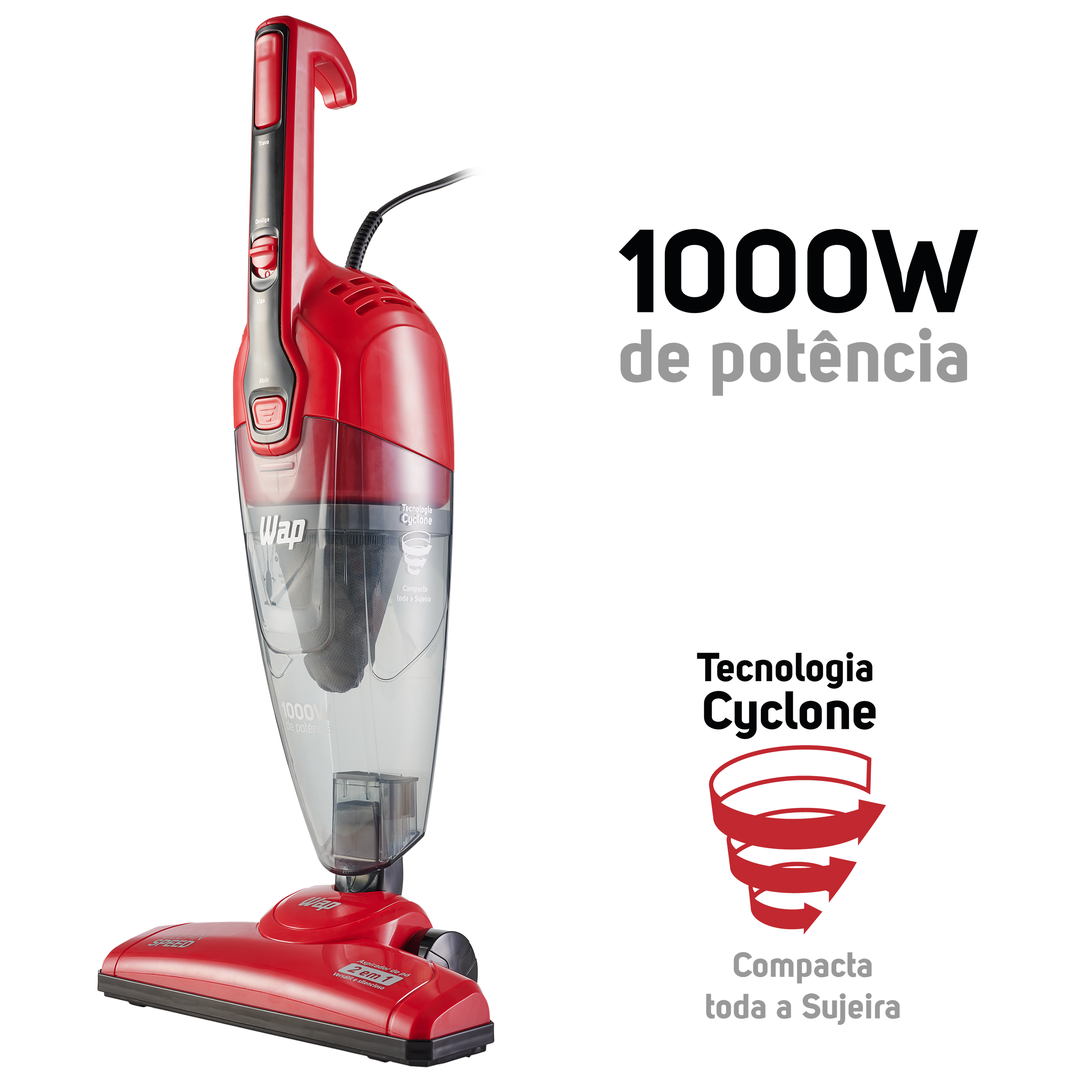 | CONTEÚDO DA EMBALAGEM: | Aspirador de Pó Vertical WAP CLEAN SPEED + Acessórios + Manual de Instruções. |