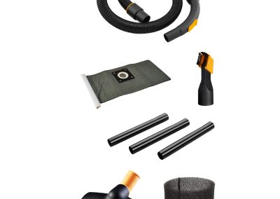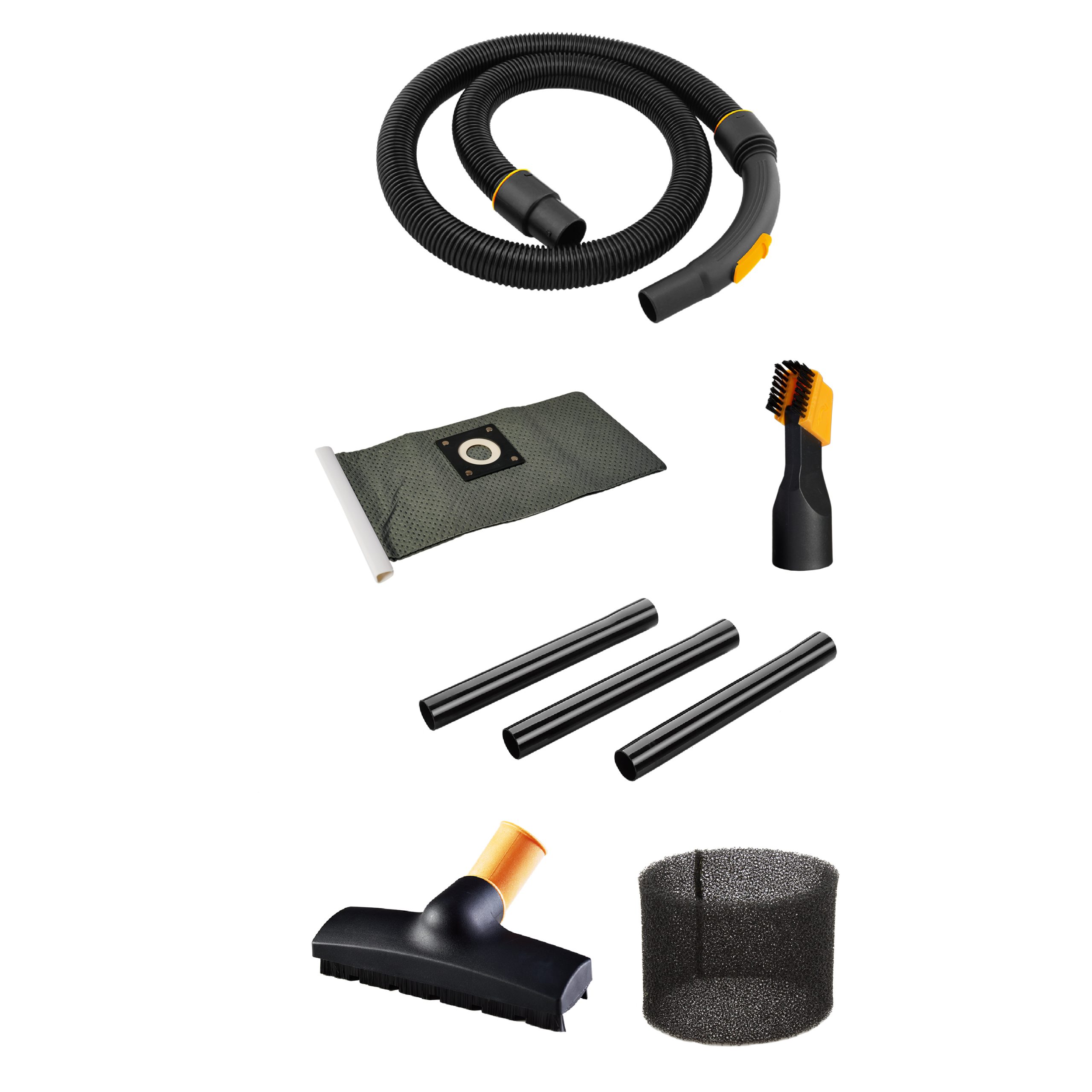 | 1 Bico canto e escova. 1 Mangueira de 1,5 m. 3 extensores de plástico. 1 Bico múltiplo para carpetes e piso frio. 1 Filtro de espuma lavável. 1 Filtro de tecido lavável. |