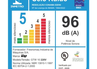 | NÍVEL DE RUÍDO: | 127V - 92 dB(A) / 220V - 96 dB(A) |