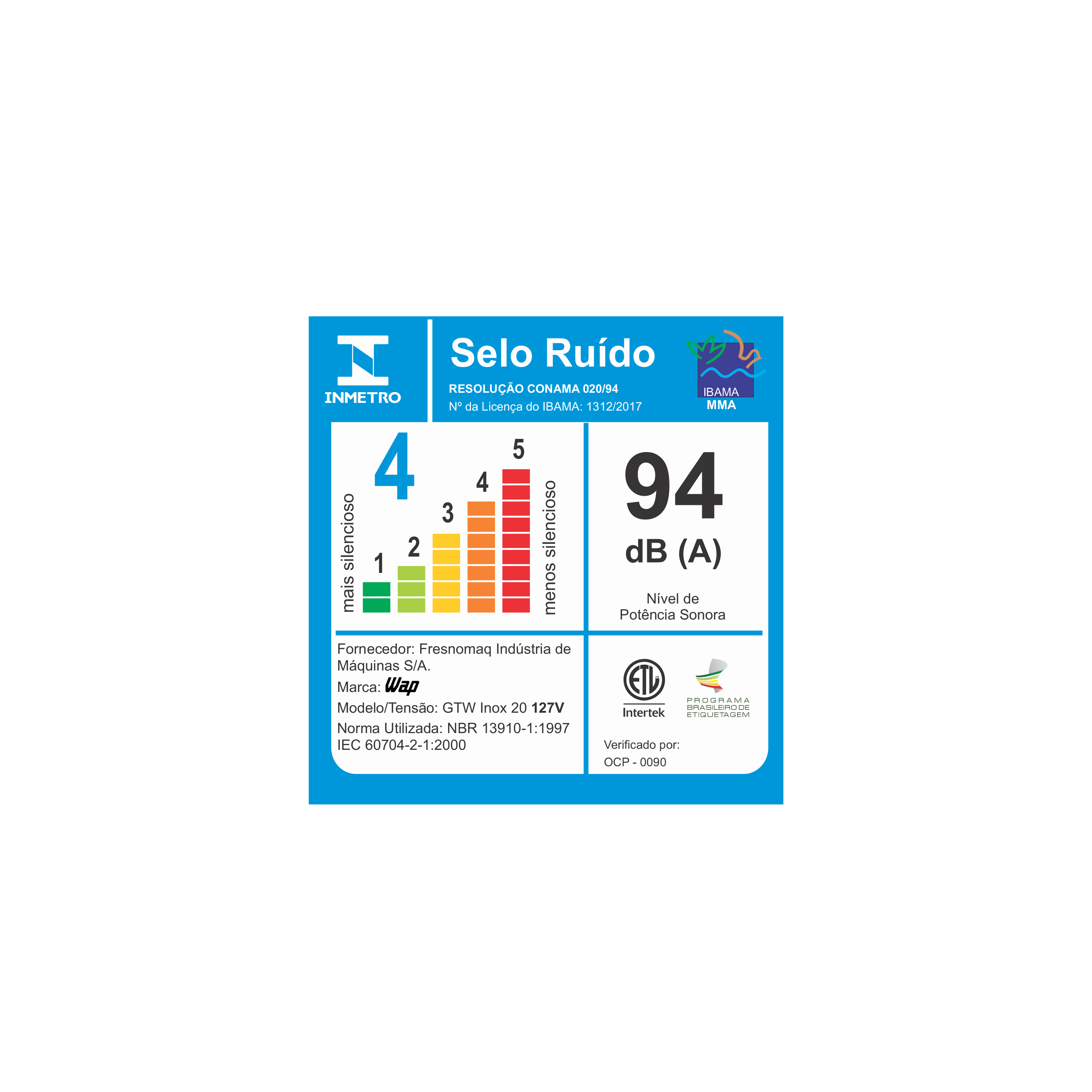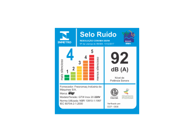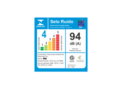 | NÍVEL DE RUÍDO: | 92 dB(A) 127v - 94 dB(A) 220v |