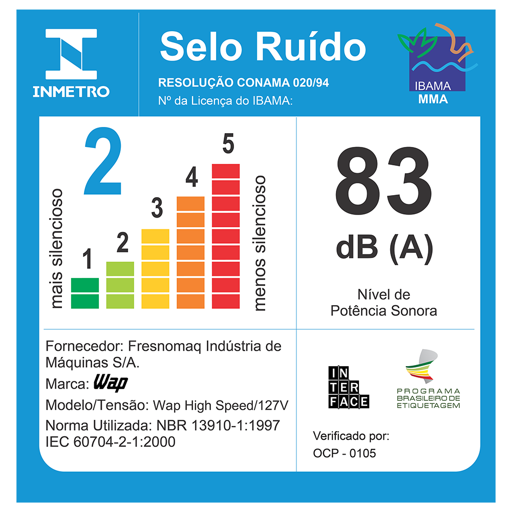 | NÍVEL DE RUÍDO: | 83 dB(A) |
