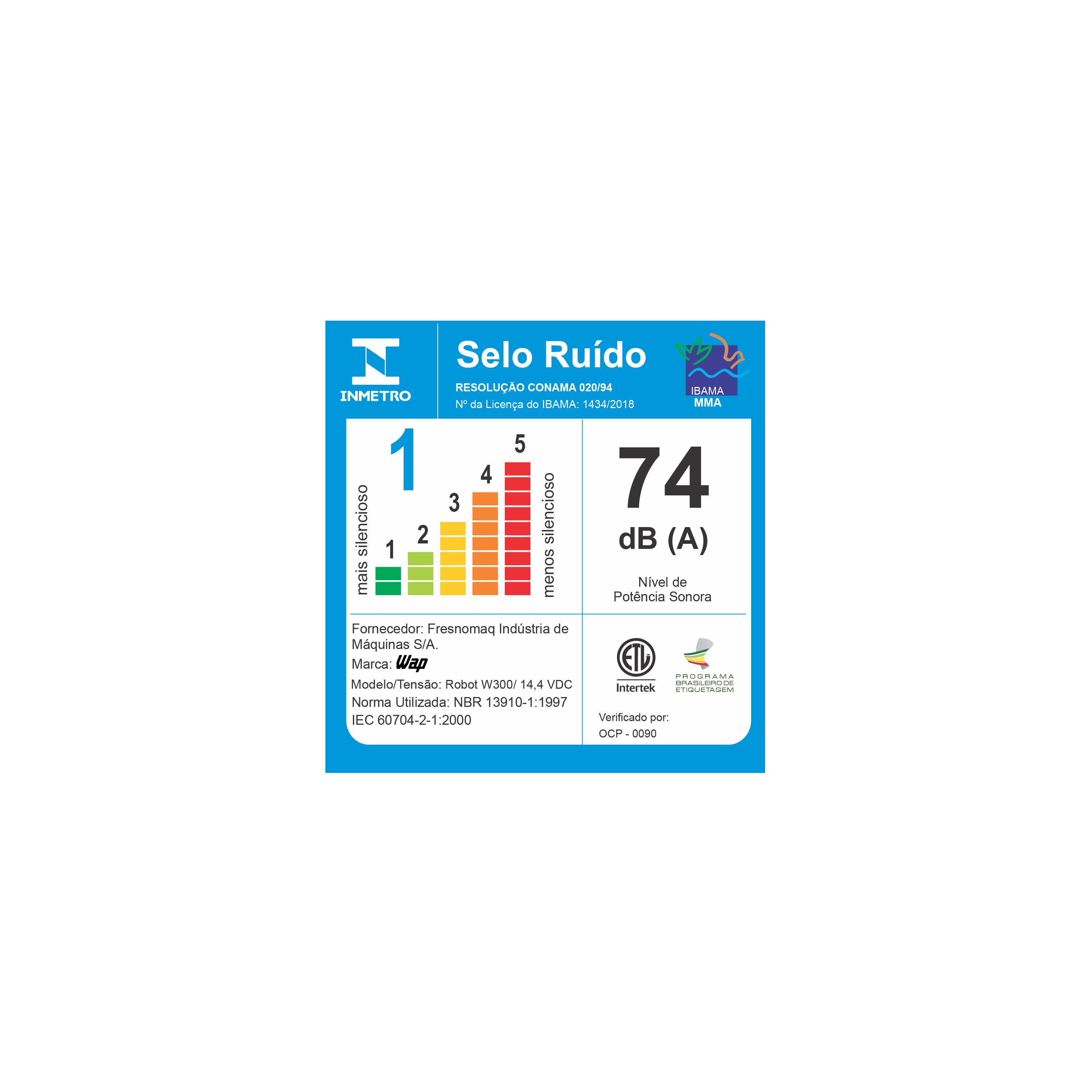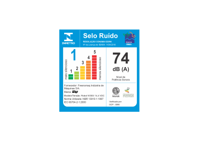 | NÍVEL DE RUÍDO: | 74 dB(A) |