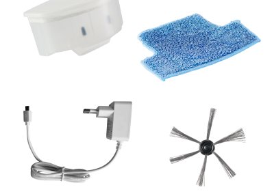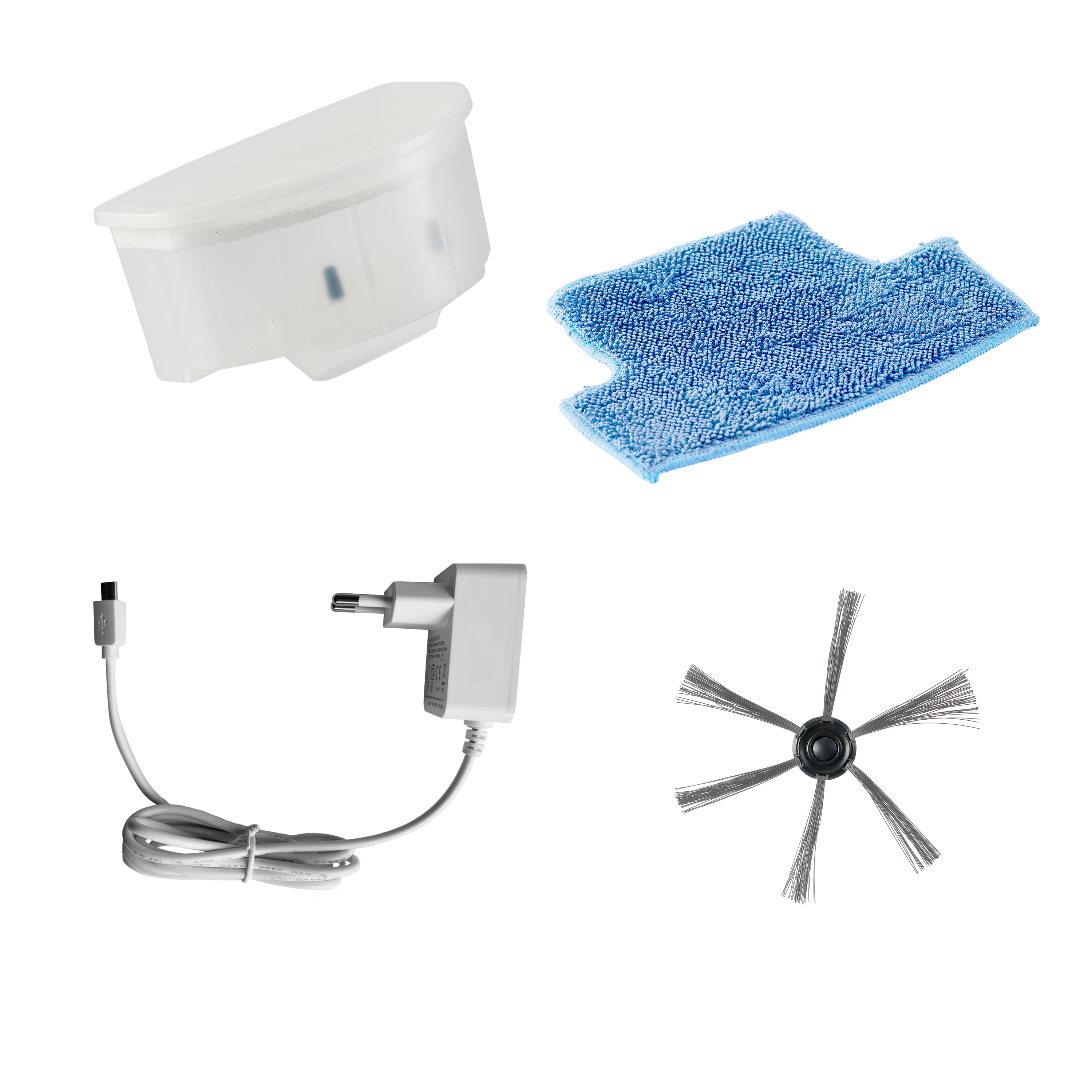 | 1 MOP em microfibra 1 Carregador Bivolt 1 Filtro de tecido lavável 1 Escova giratória |