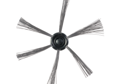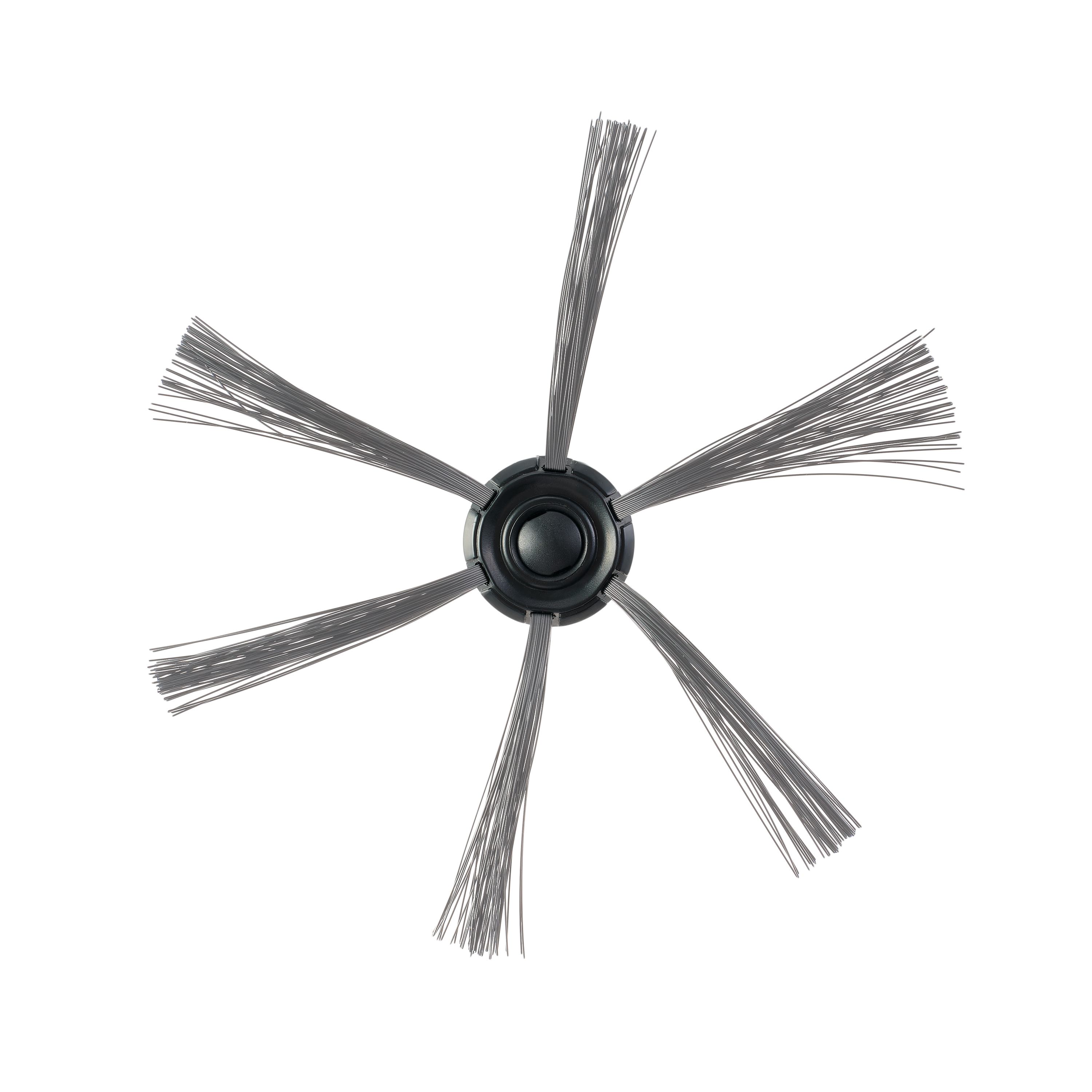 - A escova lateral giratória alcança todos os cantos da casa para uma limpeza completa.