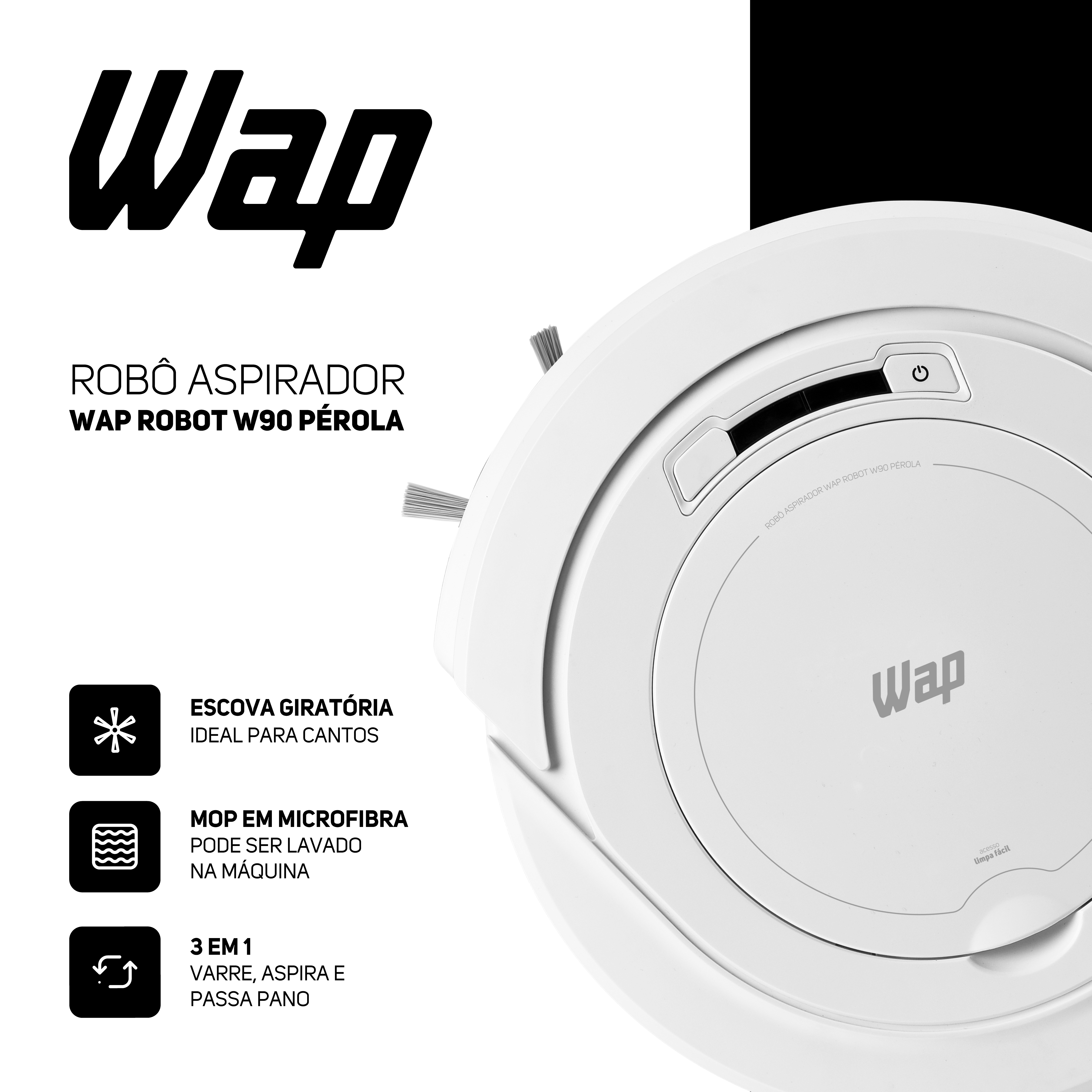 - Robô Aspirador de Pó Passa Pano WAP ROBOT W90 PÉROLA Bivolt
