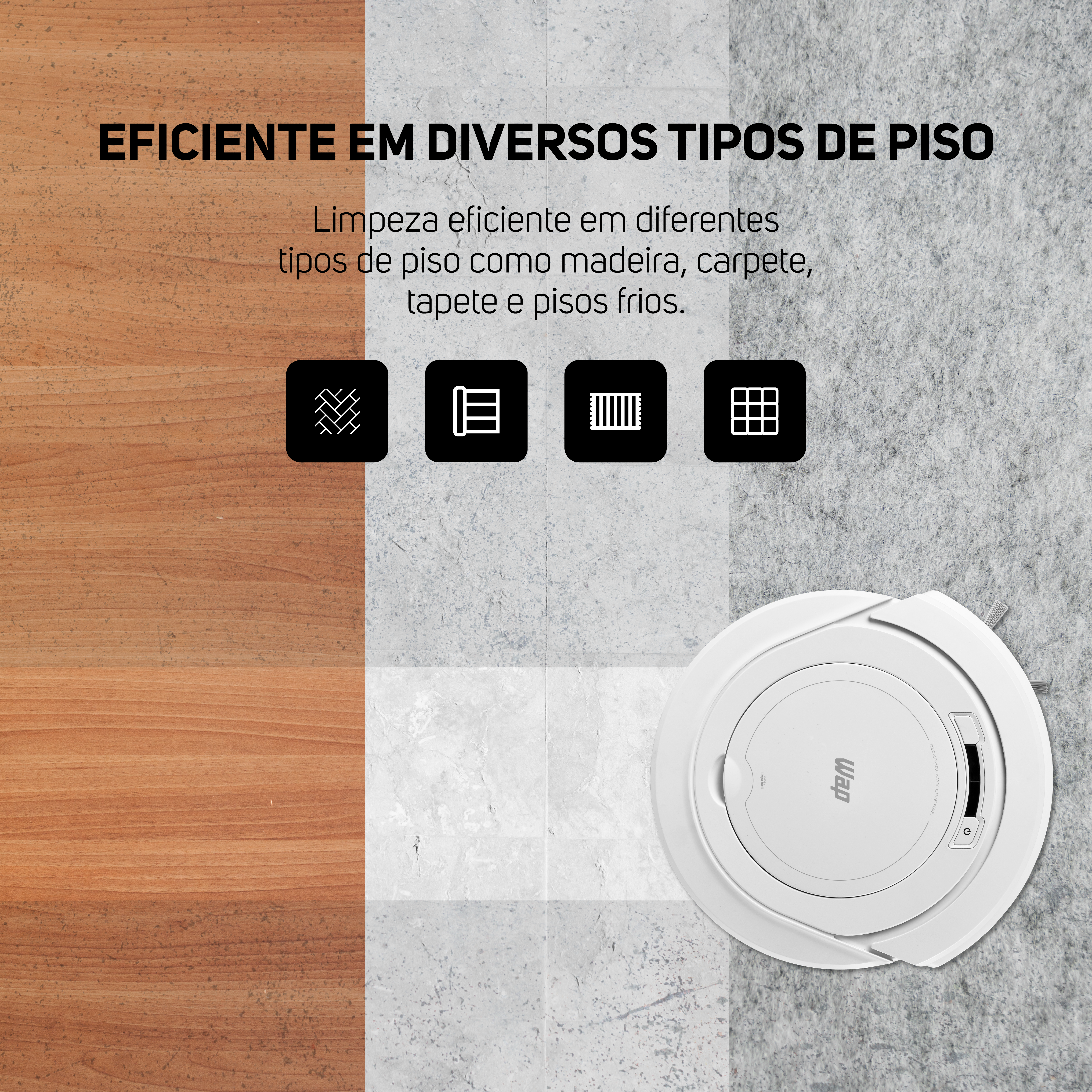 Limpar com praticidade e eficiência nunca foi tão simples! Com o Robô Aspirador WAP ROBOT W90 PÉROLA, você varre, aspira e passa pano de uma só vez, garantindo uma limpeza completa em diversos tipos de superfícies, como madeira, carpete, tapetes e pisos frios, tudo com um alto poder de sucção.