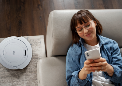 Enquanto sua rotina acontece, o W90 PÉROLA retém pelos e fios de cabelo de pisos frios, tapetes e carpetes, oferecendo ambientes mais saudáveis para toda família sem nenhum esforço extra. Equipado com sensores infravermelhos contra quedas e redirecionamento, o robô aspirador se move com segurança, identificando possíveis obstáculos que possam causar acidentes.