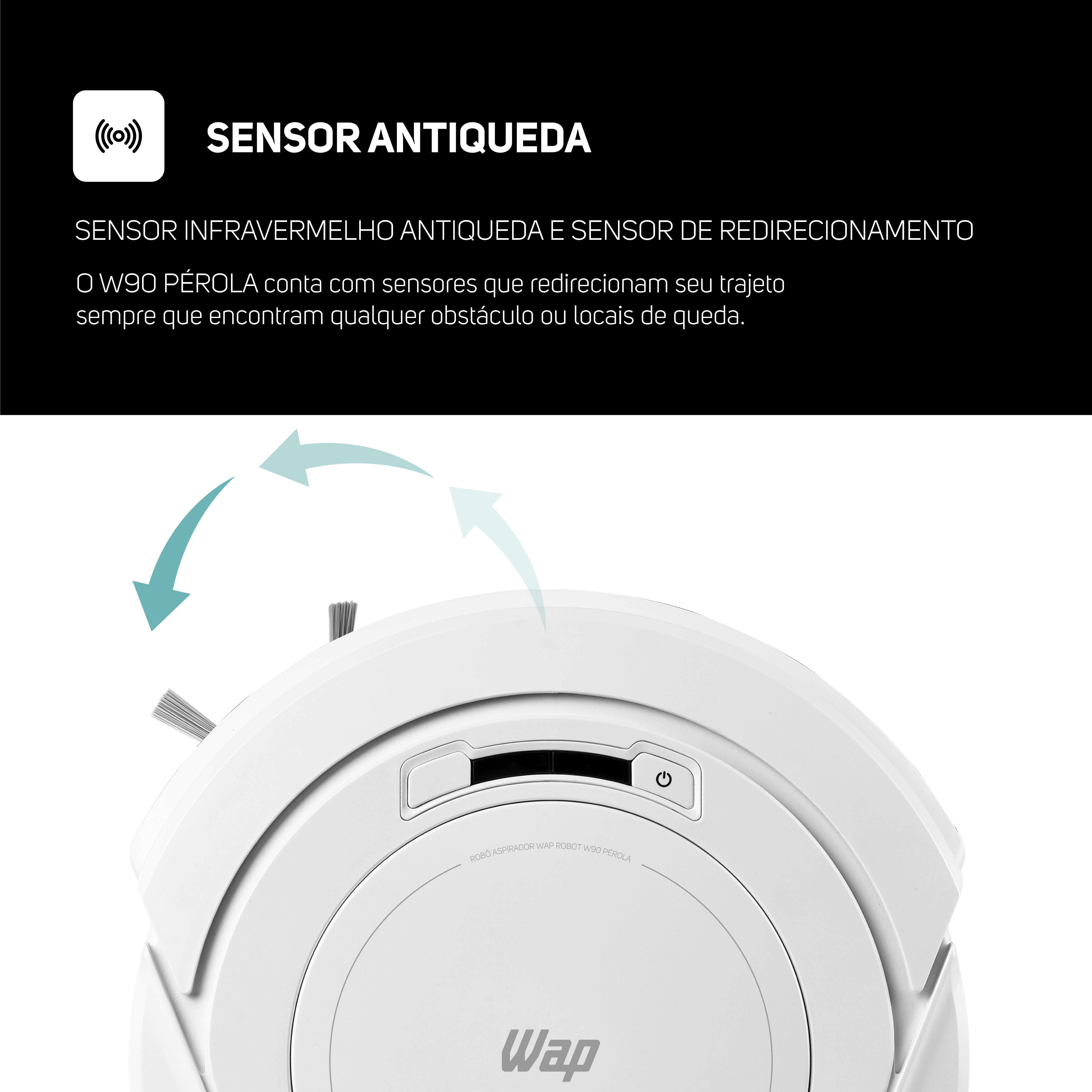 - Robô Aspirador de Pó WAP ROBOT W90 PÉROLA 3 em 1 Varre Aspira e Passa Pano MOP Automático com Sensores Carregador Bivolt
