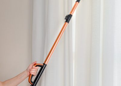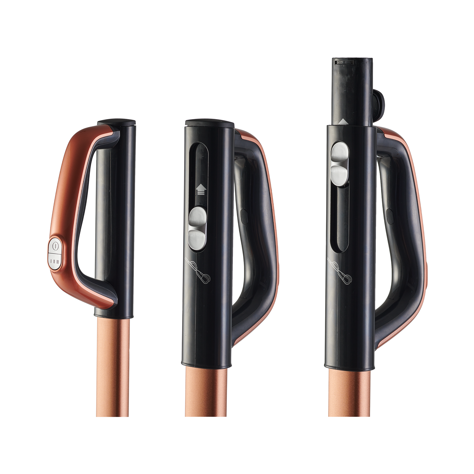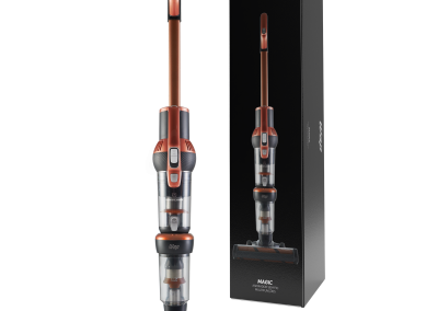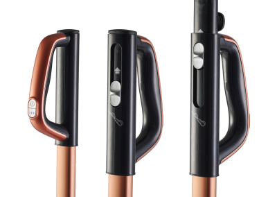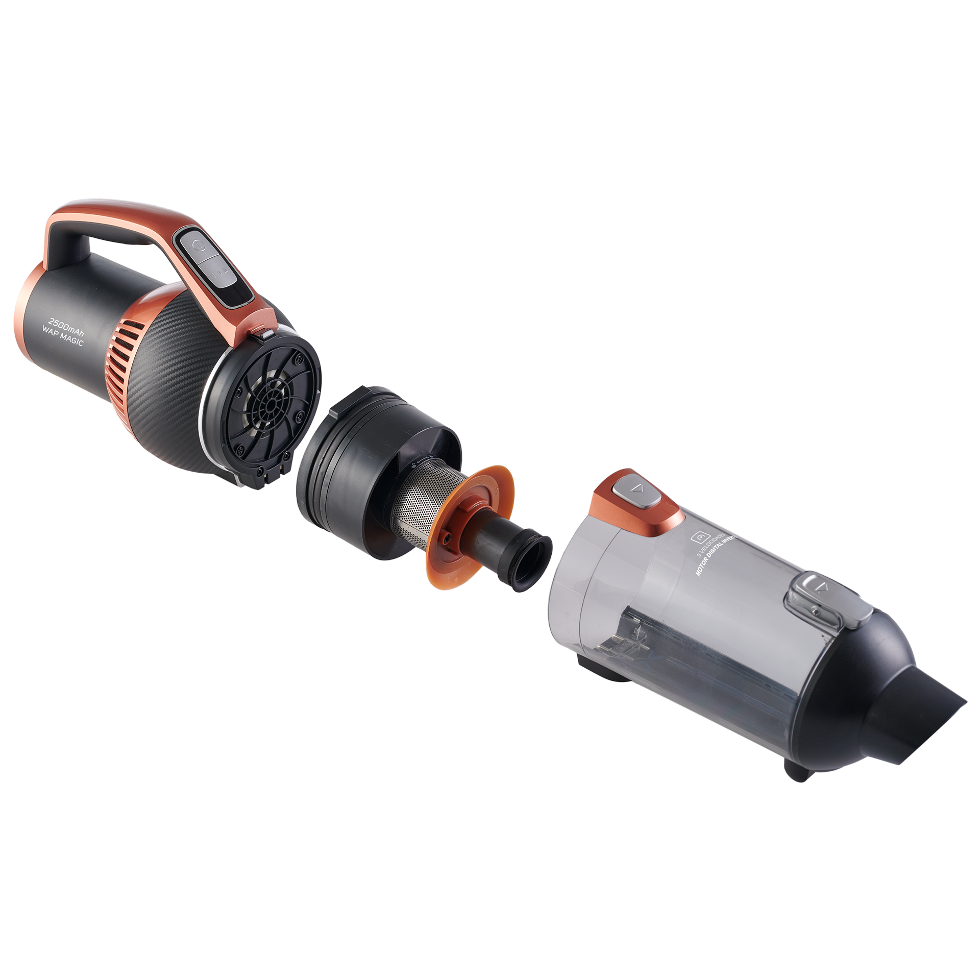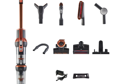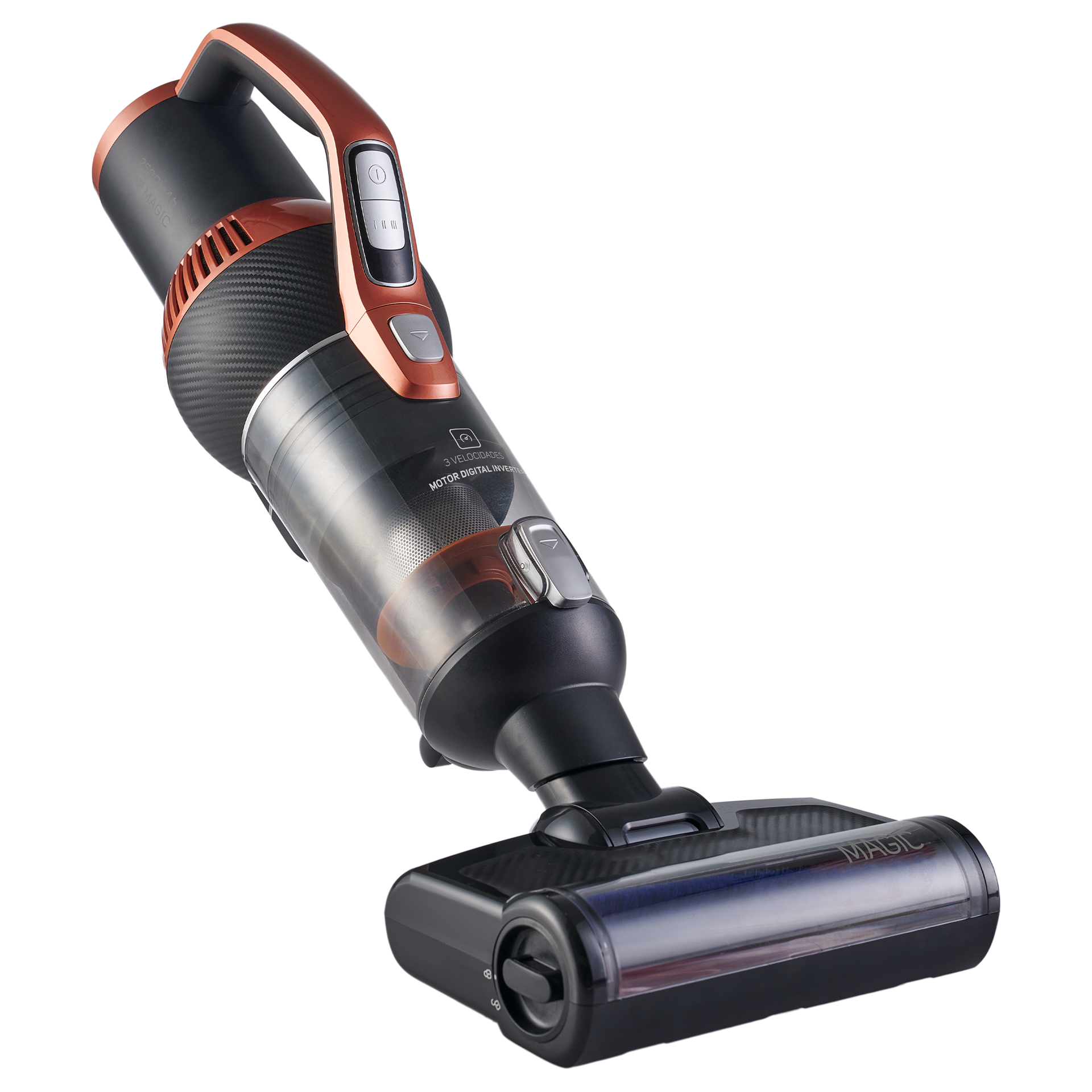 Ele pode ser utilizado tanto como aspirador vertical, como também portátil, para uma limpeza específica ou de difícil acesso. Basta apenas desconectar o bico múltiplo e conectar um dos seus vários acessórios, além de possuir um recipiente de pó e filtro lavável.