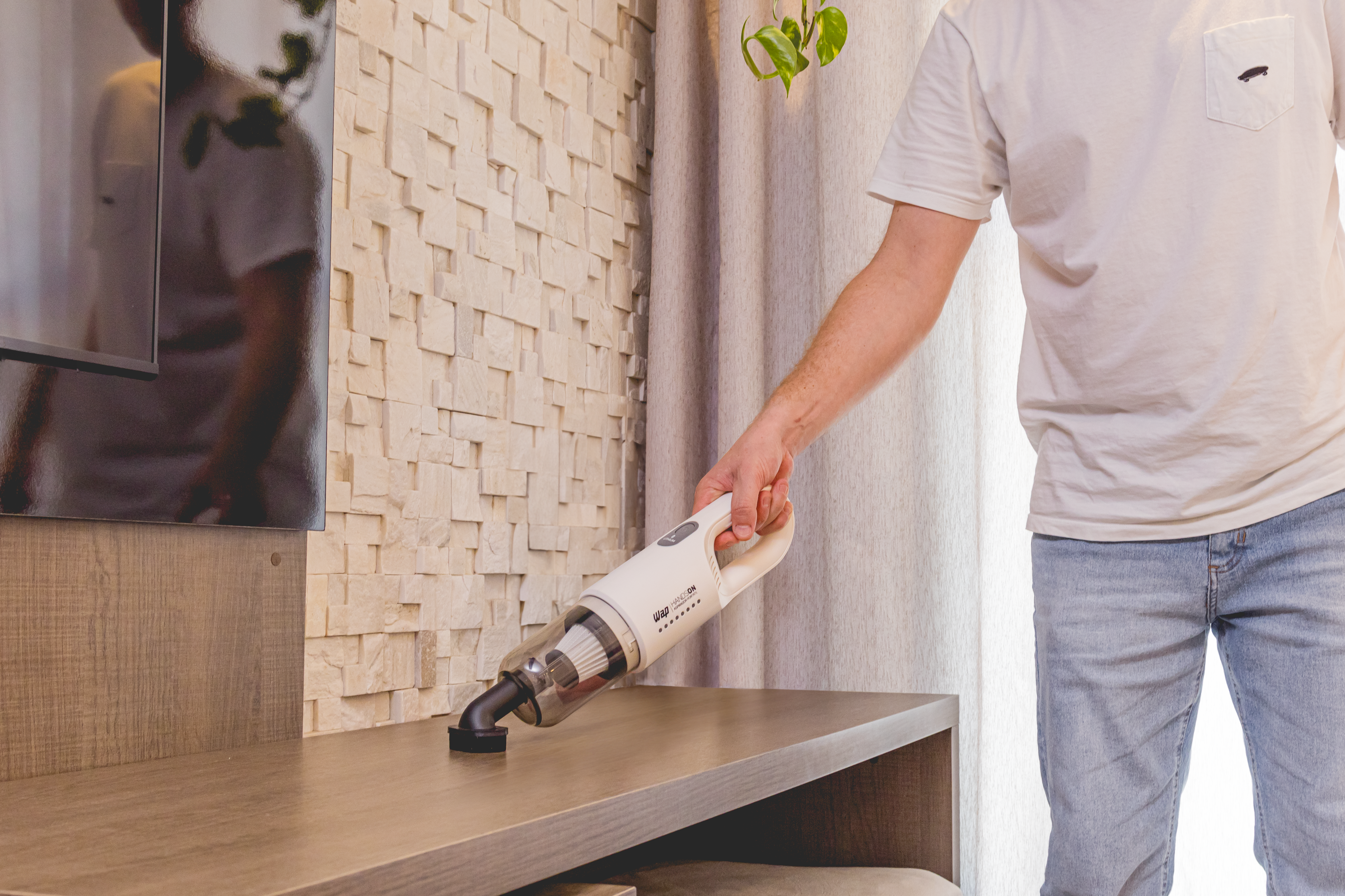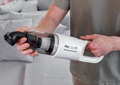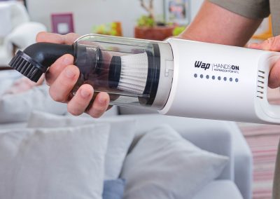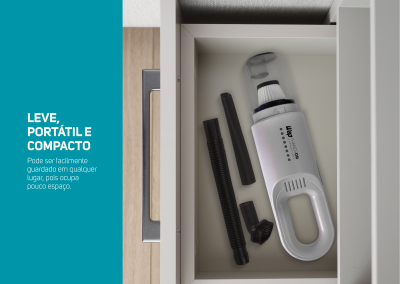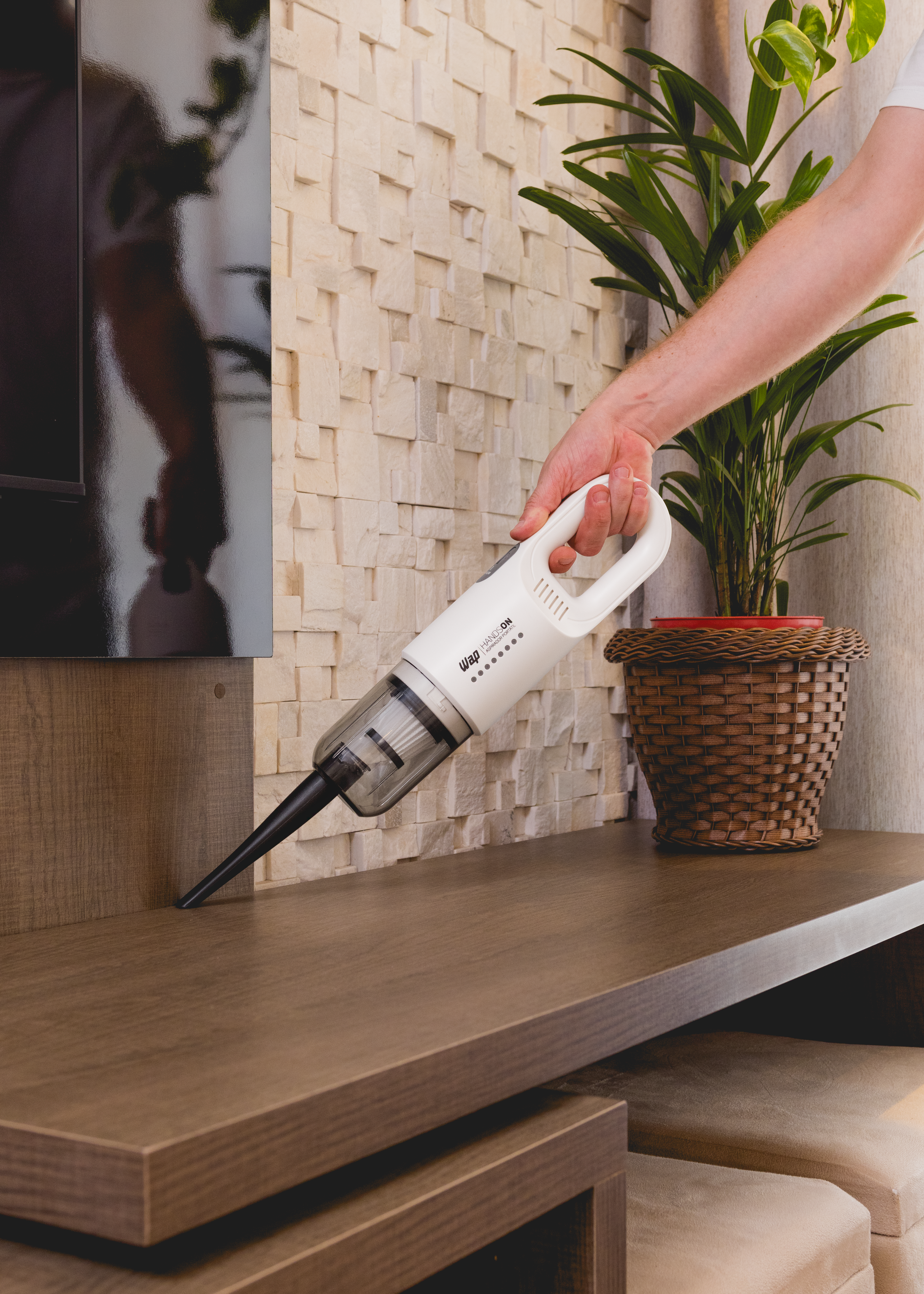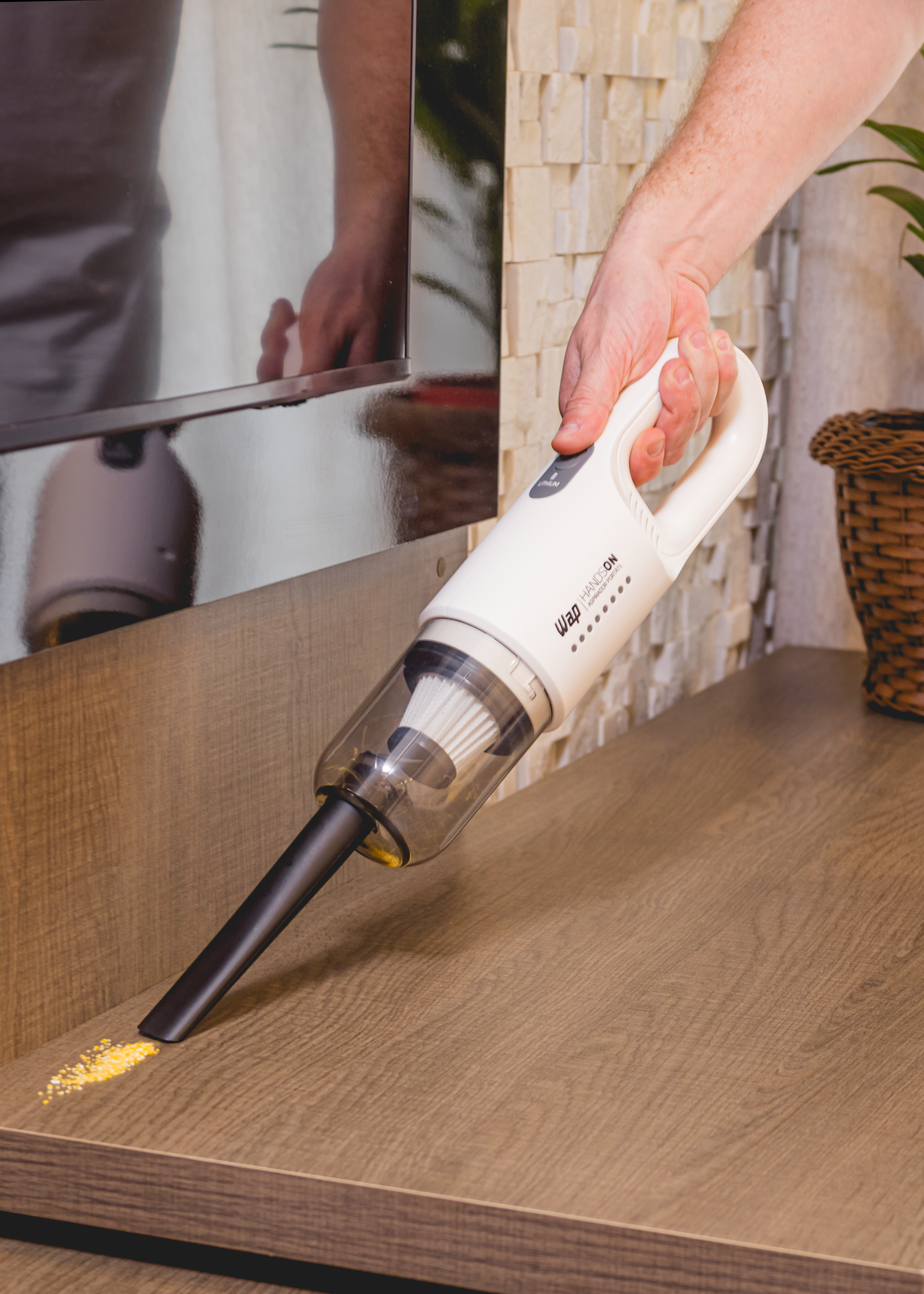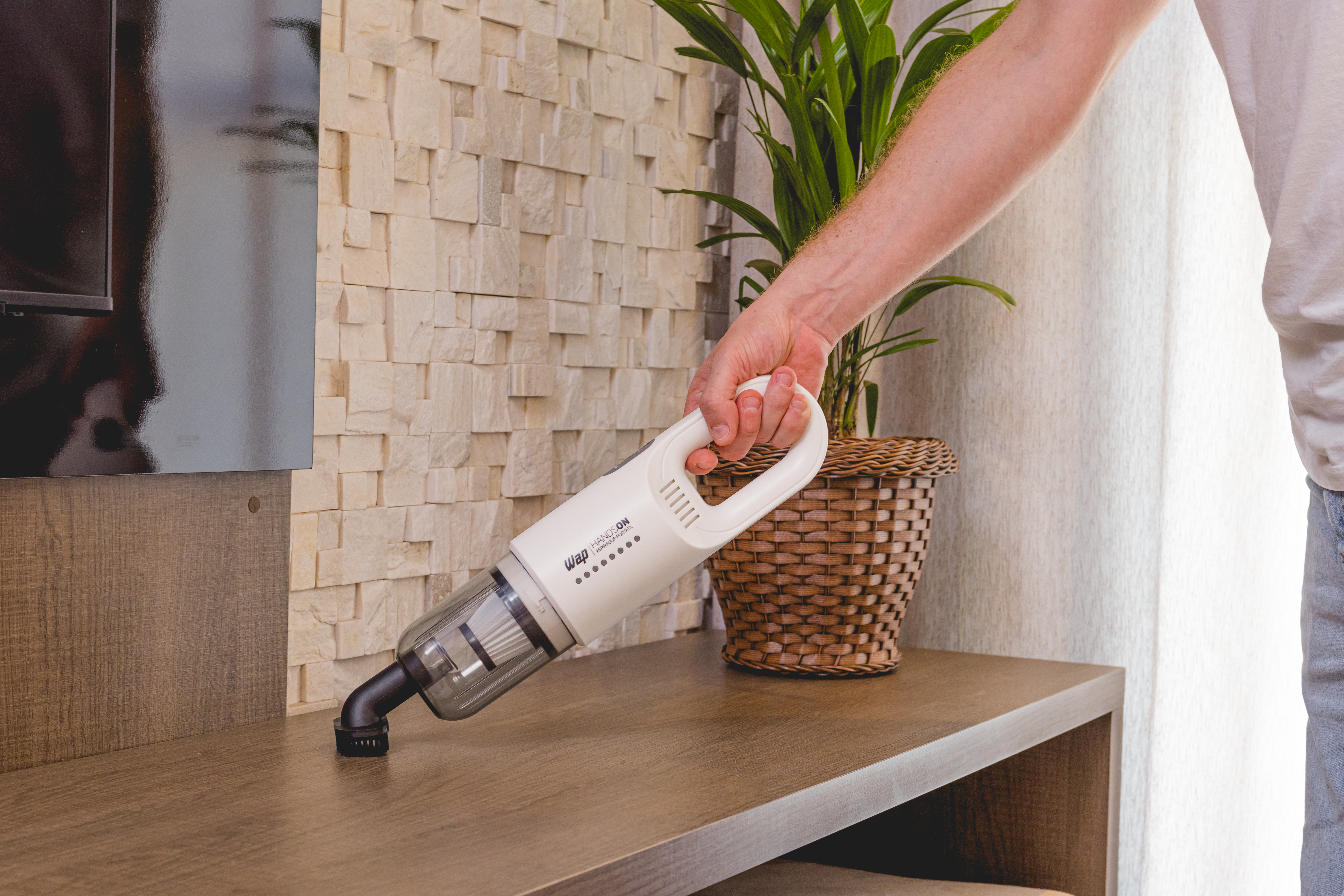O Aspirador Pórtatil a Bateria WAP HANDSON é a resposta à mobilidade desejada em sua rotina de limpeza. Alcance todos os cantos, debaixo de móveis, em locais elevados e explore os espaços mais difíceis com facilidade. É leve, portátil e compacto, pode ser facilmente guardado em qualquer lugar. Assim, você pode levá-lo com você para qualquer lugar, sem ocupar muito espaço.
