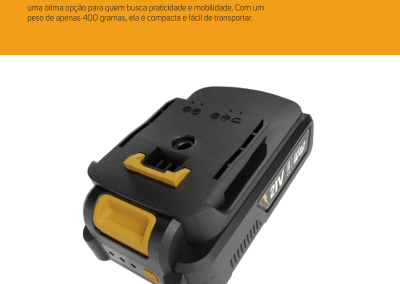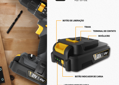 A Bateria 21V K21 BT02 é a escolha definitiva para profissionais que valorizam durabilidade e praticidade. Elevando o desempenho de sua linha 21V, a bateria 21V K21 BT02 proporciona uma experiência superior em todas as atividades.