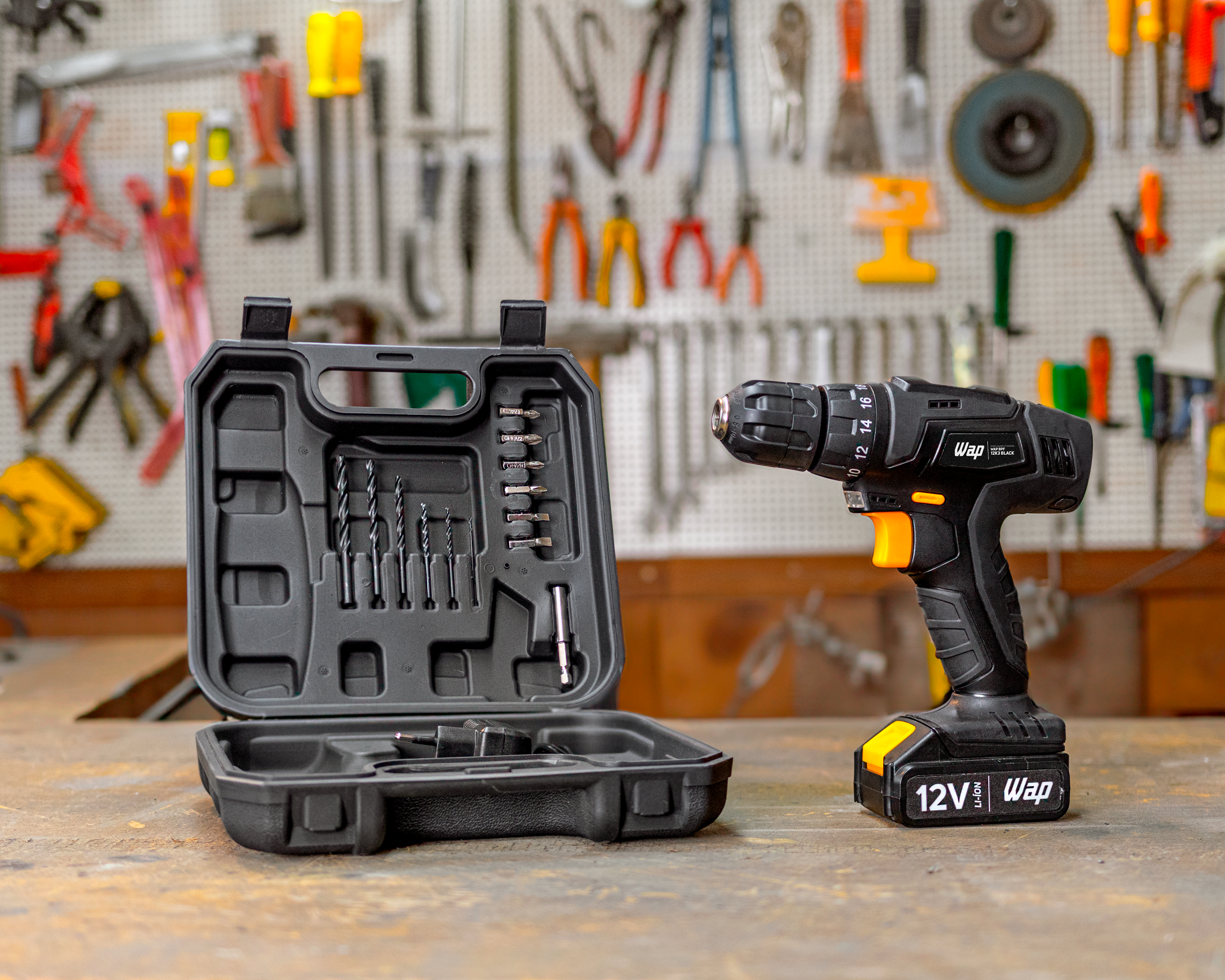 - Parafusadeira e Furadeira a Bateria 12V 1500 mAh WAP BPF 12K3 BLACK Bivolt com Maleta e Kit de Acessórios