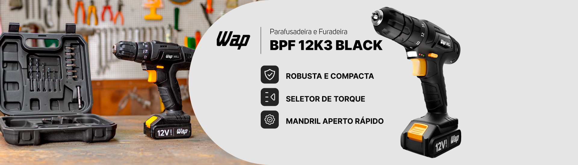 | TÍTULO: | WAP ACADEMY - PARAFUSADEIRA E FURADEIRA WAP BPF 12K3 BLACK |