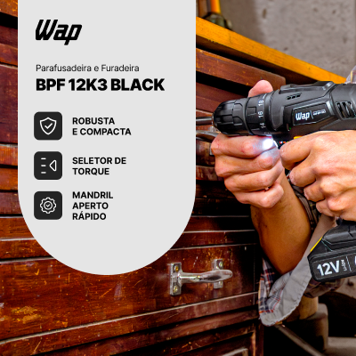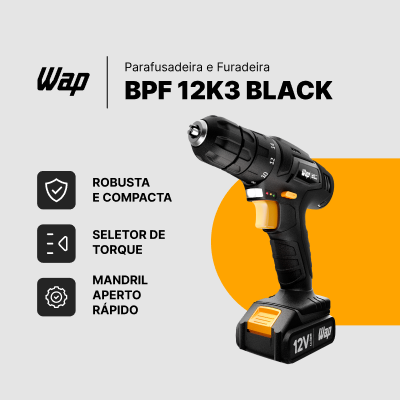 Com a Parafusadeira e Furadeira 12V WAP BPF 12K3 BLACK, você pode ter certeza de que terá uma ferramenta potente e confiável à sua disposição. Não perca mais tempo e adquira já a sua! Ela é a escolha certa para quem busca qualidade, praticidade e eficiência.