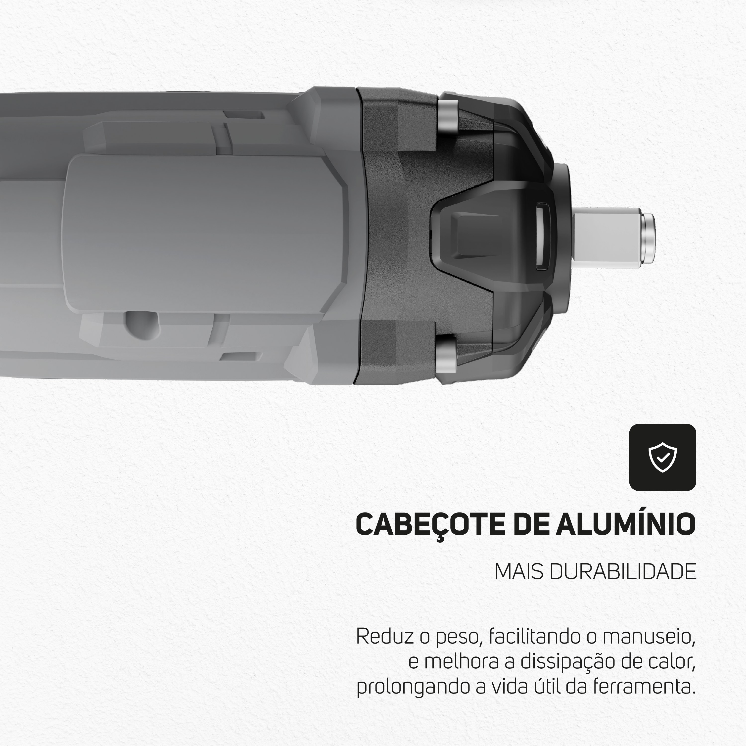 O gatilho de velocidade variável oferece controle preciso, enquanto os 3 LEDs de trabalho iluminam a área, proporcionando visibilidade em qualquer ambiente.