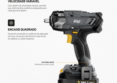 Perfeita para profissionais da construção, mecânicos e entusiastas de bricolagem, a Chave de Impacto K21 CH01 da WAP é a escolha perfeita para quem busca desempenho excepcional e confiabilidade em uma única ferramenta.