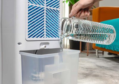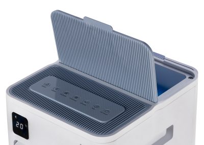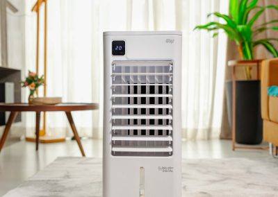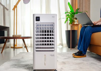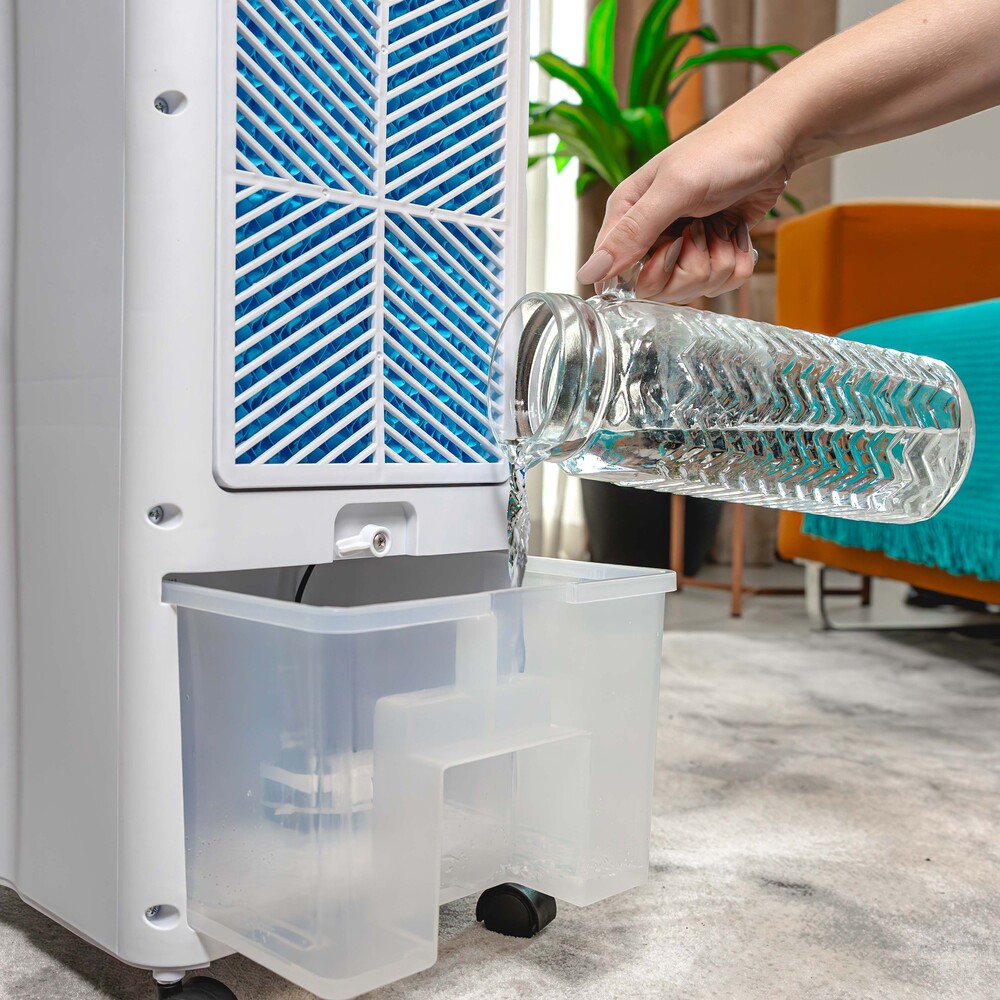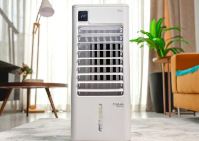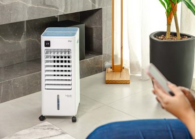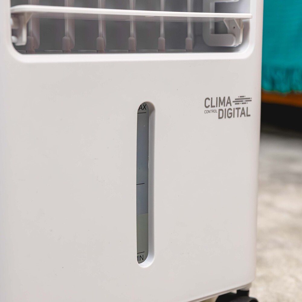 - O climatizador possui reservatórios de água superior e inferior, tornando o reabastecimento prático.