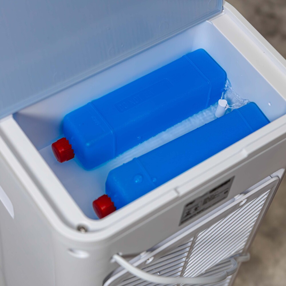 - Os dois blocos de congelamento elevam a capacidade de resfriamento do climatizador.