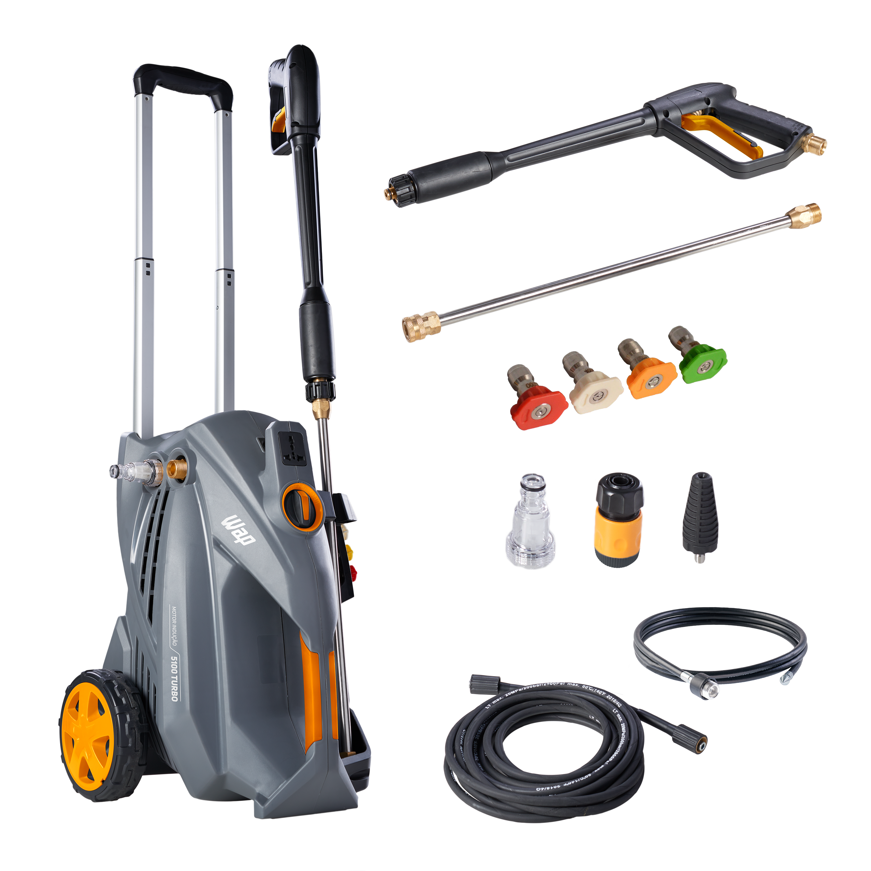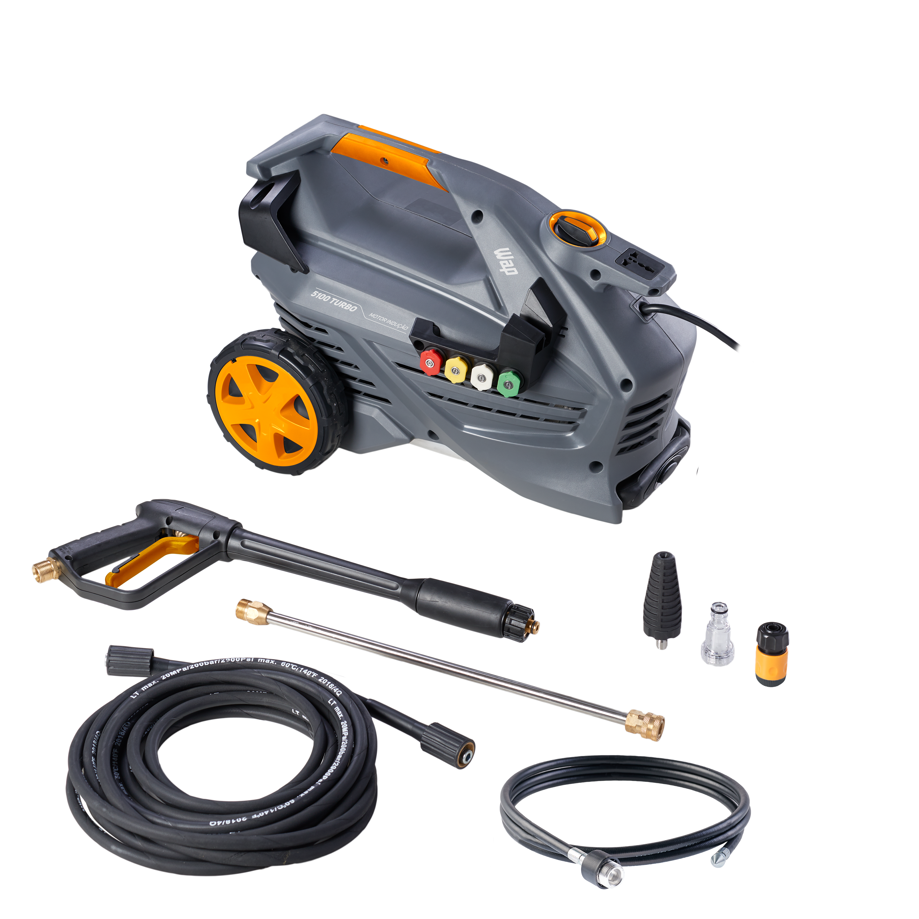 A Desobstruidora e Lavadora de Alta Pressão WAP 5100 Turbo ULTRA conta com uma bomba axial com cabeçote de alumínio e pistões em aço inox, que garantem mais durabilidade ao produto. Além disso, vem com cabo elétrico de 5 metros, mangueira desentupidora de 2 metros e mangueira de alta pressão com trama de aço de 10 metros que permitem cobrir uma grande área sem precisar locomover a máquina. Equipado com gatilho com trava de segurança, bicos de 15°, 25° e 40° além do sistema stop total, que corta o fluxo de água e a energia do motor ao soltar o gatilho, poupando energia e aumentando a vida útil do motor.