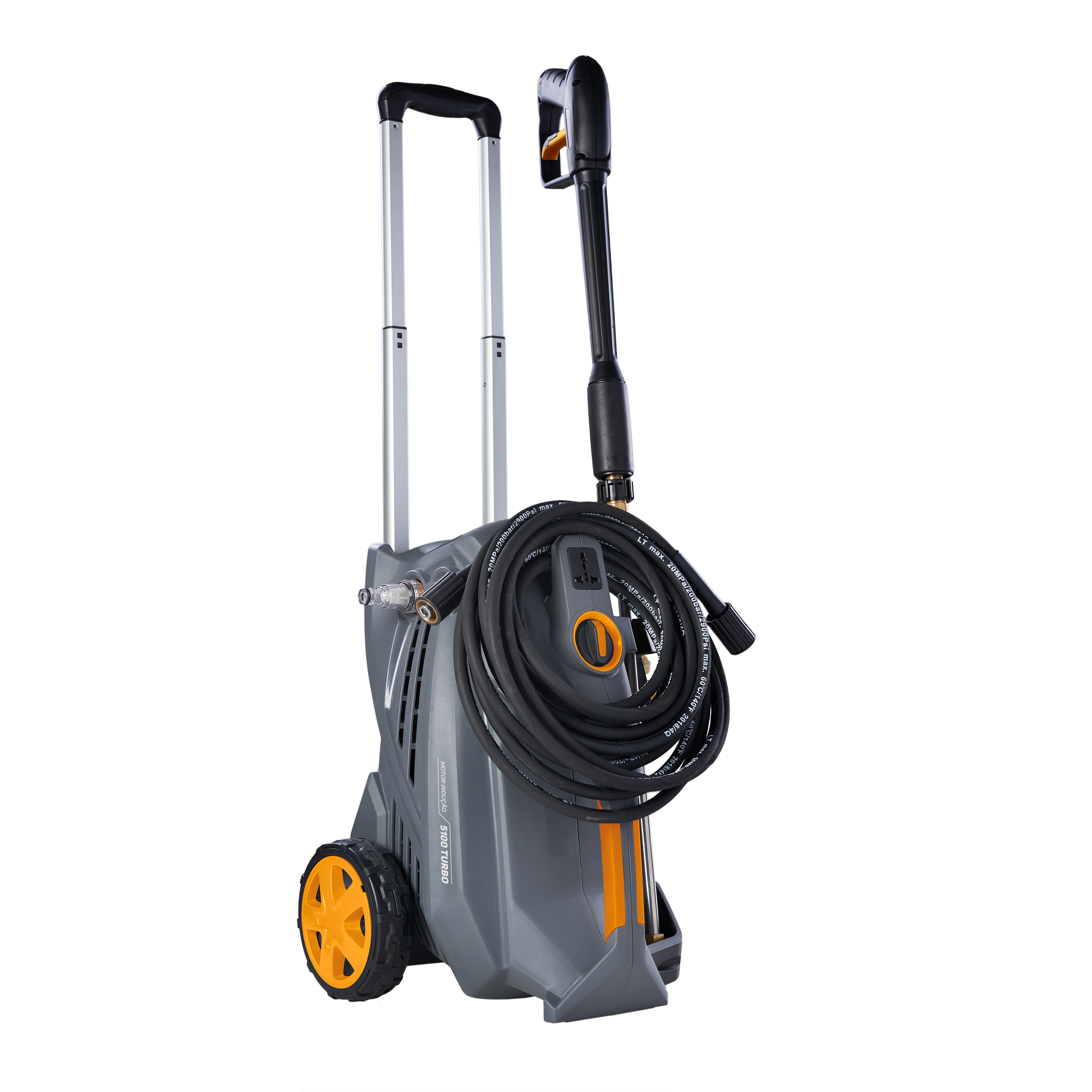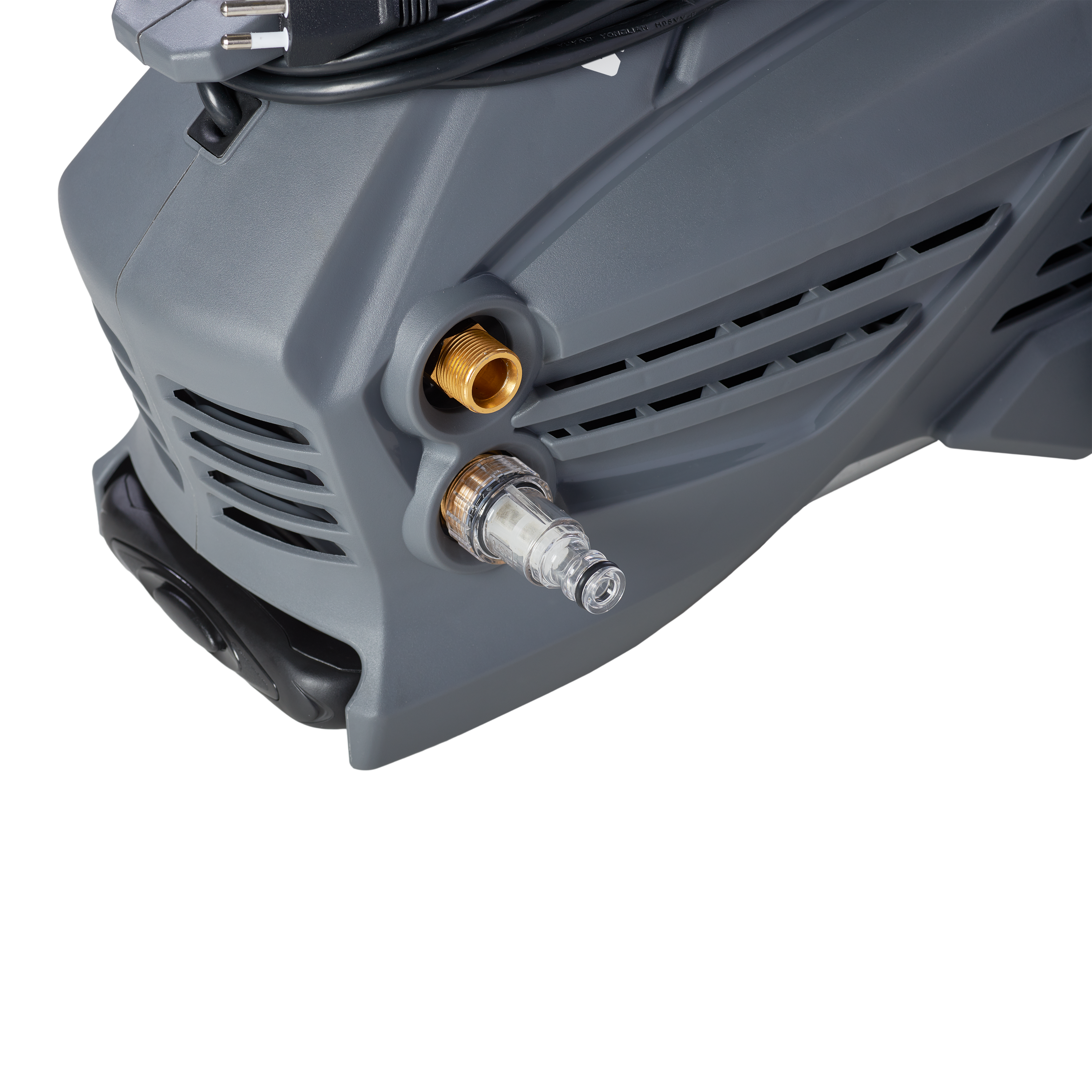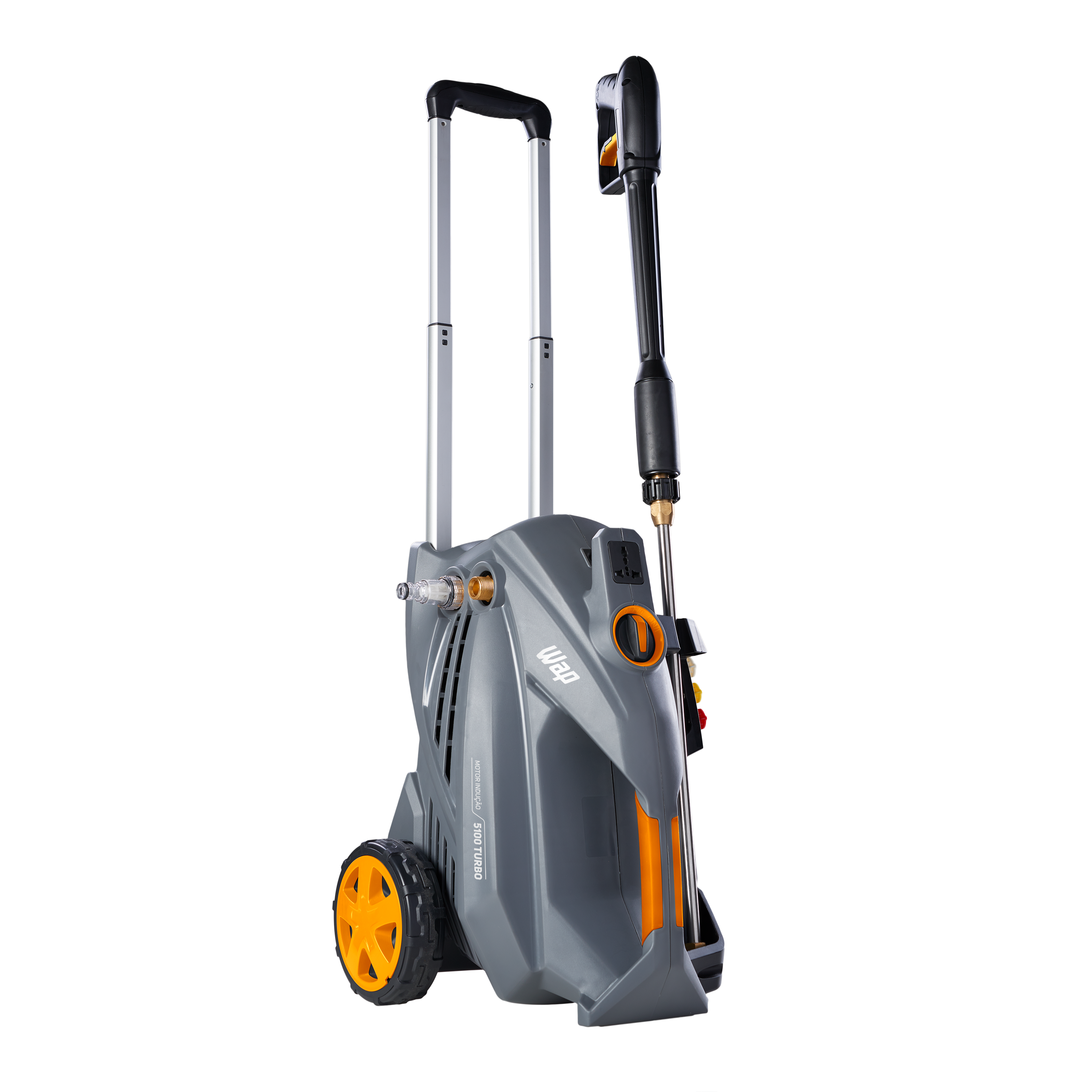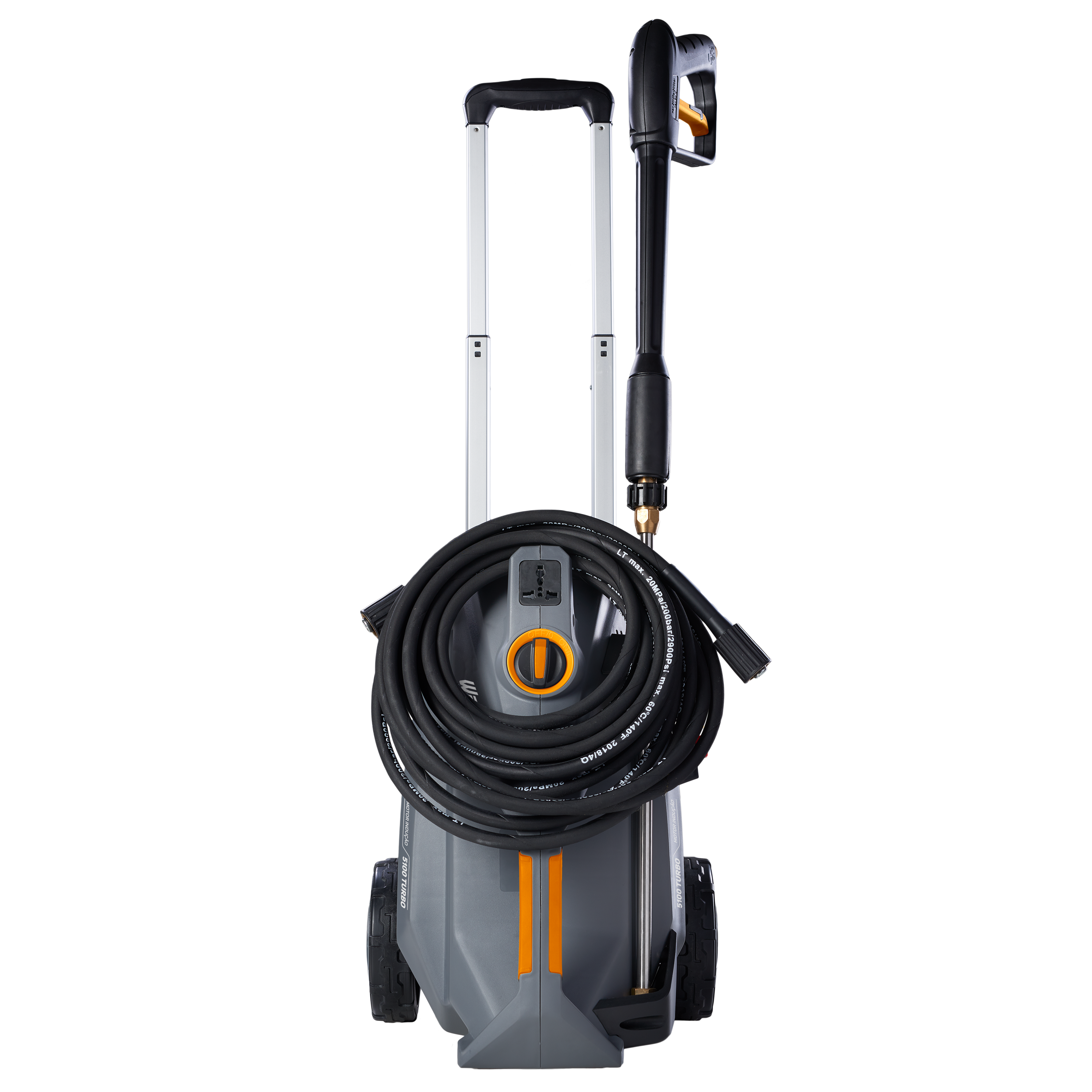Bomba axial com cabeçote de alumínio. Pistões de aço inox. Cabo elétrico de 5 metros. Sistema Stop Total. Gatilho com trava de segurança. Filtro de água. Espigão para conexão da mangueira. 2 Rodas para transporte. Alça ergonômica retrátil e emborrachada. Botão liga e desliga ergonômico e de fácil acesso. Suporte para acessórios. |