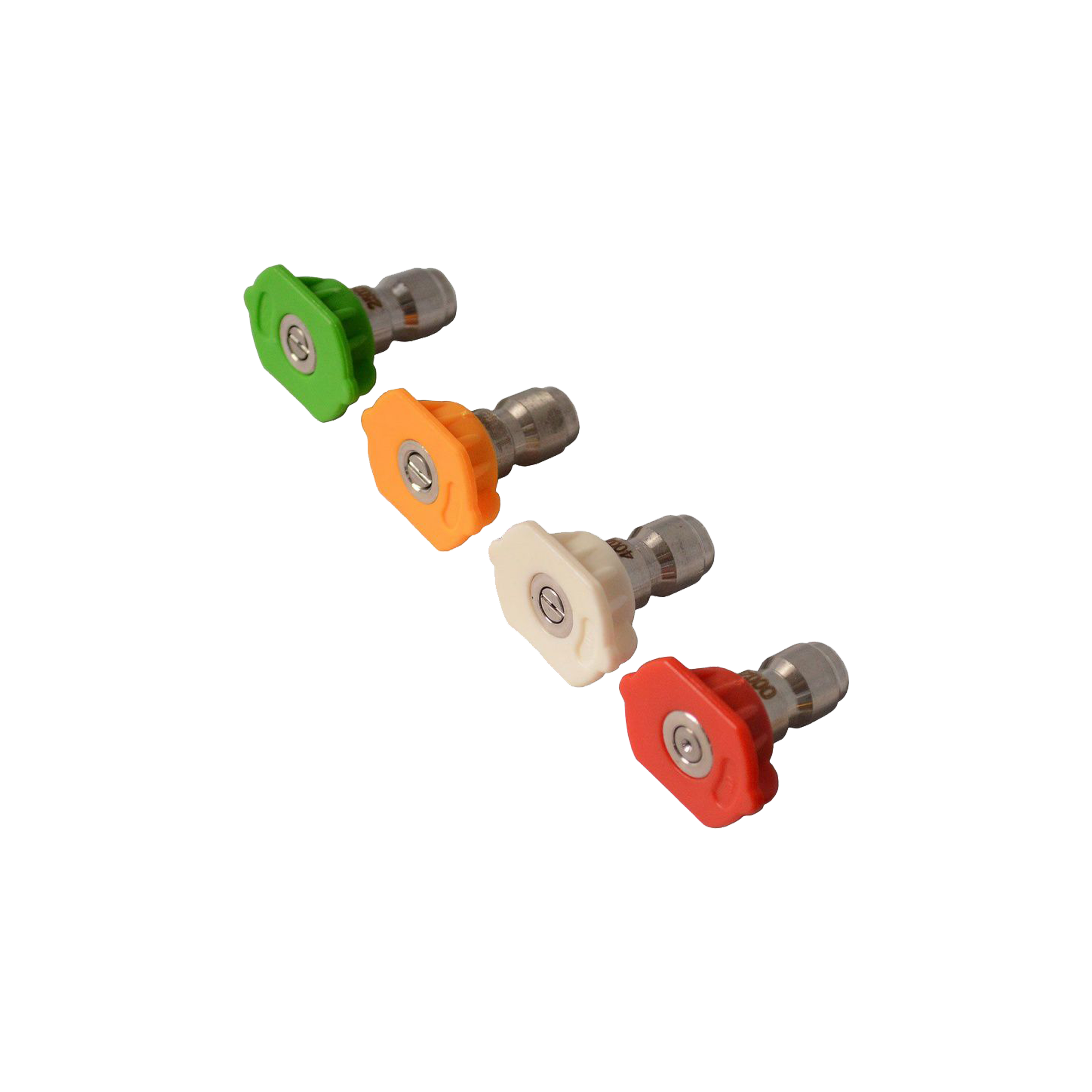 | 1 Pistola de alta pressão com conexão de rosca M22. 1 Lança de inox com conexão rápida em latão. 4 Bicos com conexão rápida (0°, 15°, 25° e 40°). 1 Bico Turbo com conexão rápida. 1 Mangueira de alta pressão com 10 m de trama de aço. 1 Mangueira desentupidora de 2 metros. |