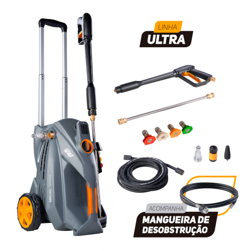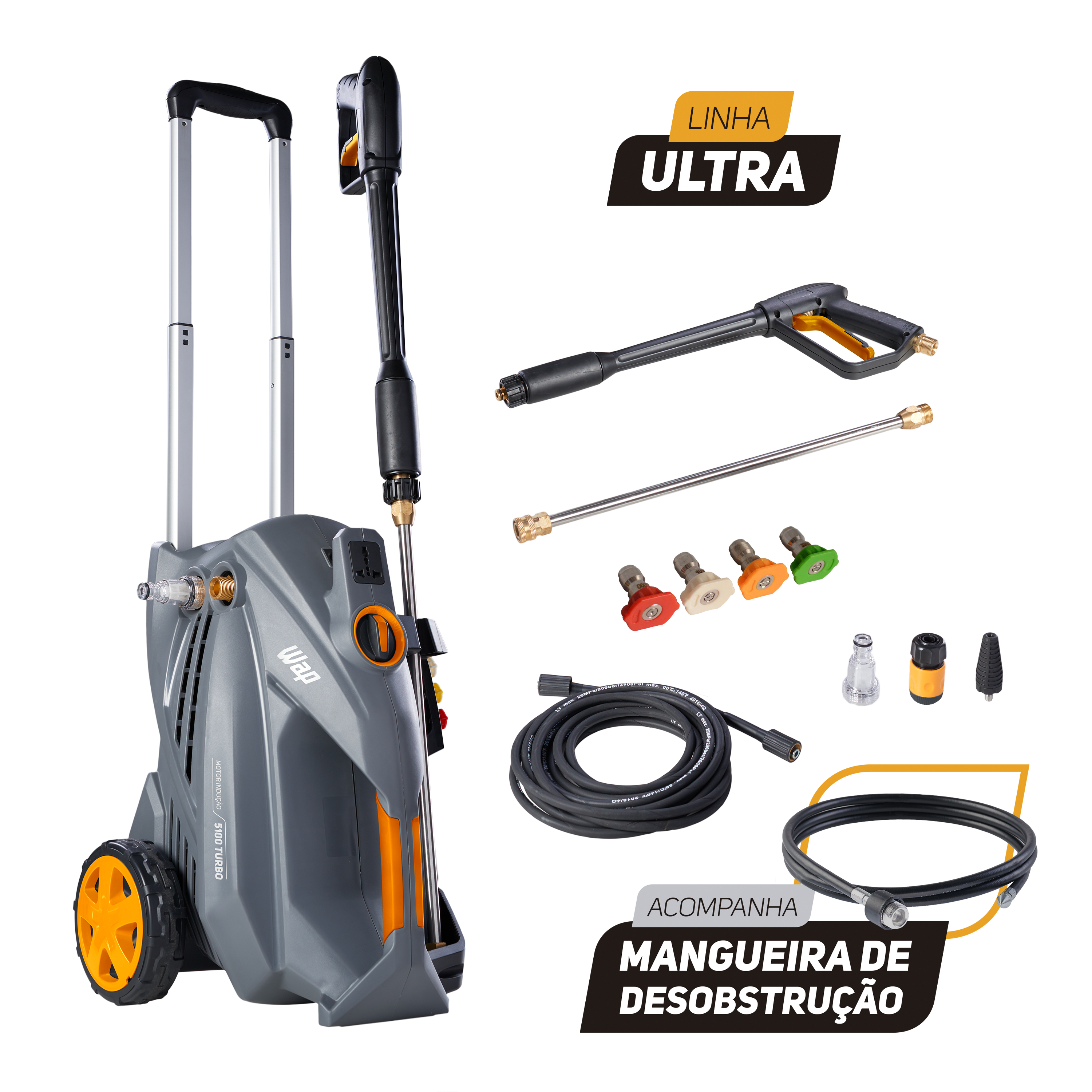 A Desobstruidora de Alta Pressão WAP 5100 Turbo ULTRA é a melhor opção para limpar sujeiras pesadas e profundas de grandes áreas com rapidez e agilidade, além de desentupir canos, calhas e tubulações com facilidade utilizando jato de água. Com motor de indução, vazão máxima de até 550 L/h, bico turbo, potência de até 2500W e pressão máxima de até 2300 PSI, é o equipamento de uso frequente perfeito para a remoção de níveis incrustados de sujeira nos mais diversos tipos de pisos e superfícies. É uma máquina compacta, durável, robusta e super prática para transportar com alças de alumínio retrátil e emborrachada. A WAP 5100 Turbo ULTRA cabe, inclusive, na caixa de transporte de motocicletas. Possui um exclusivo porta-acessórios que ajuda na organização dos componentes do produto e rodas que facilitam o transporte.