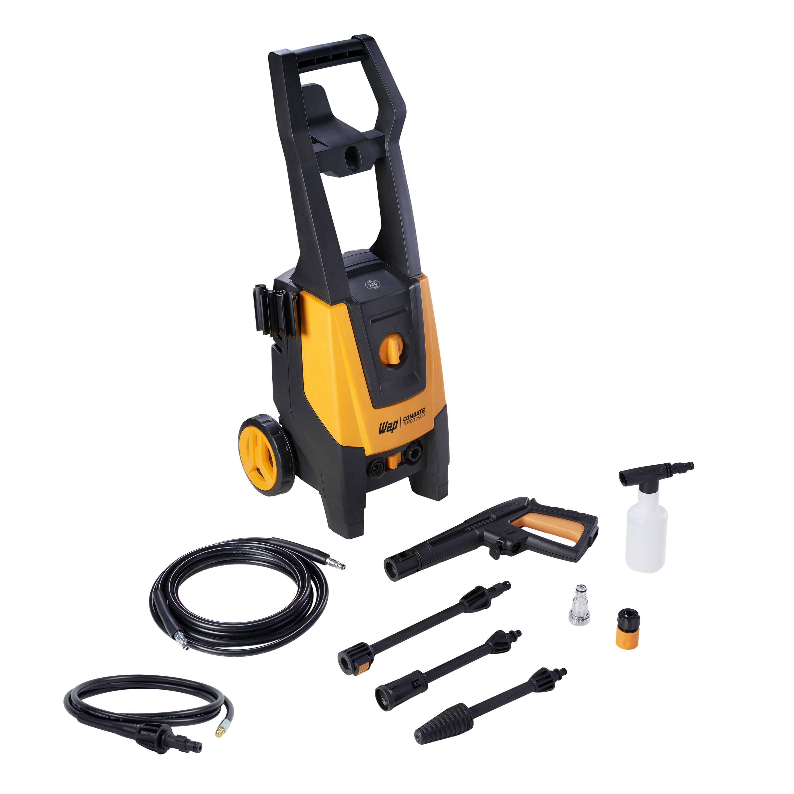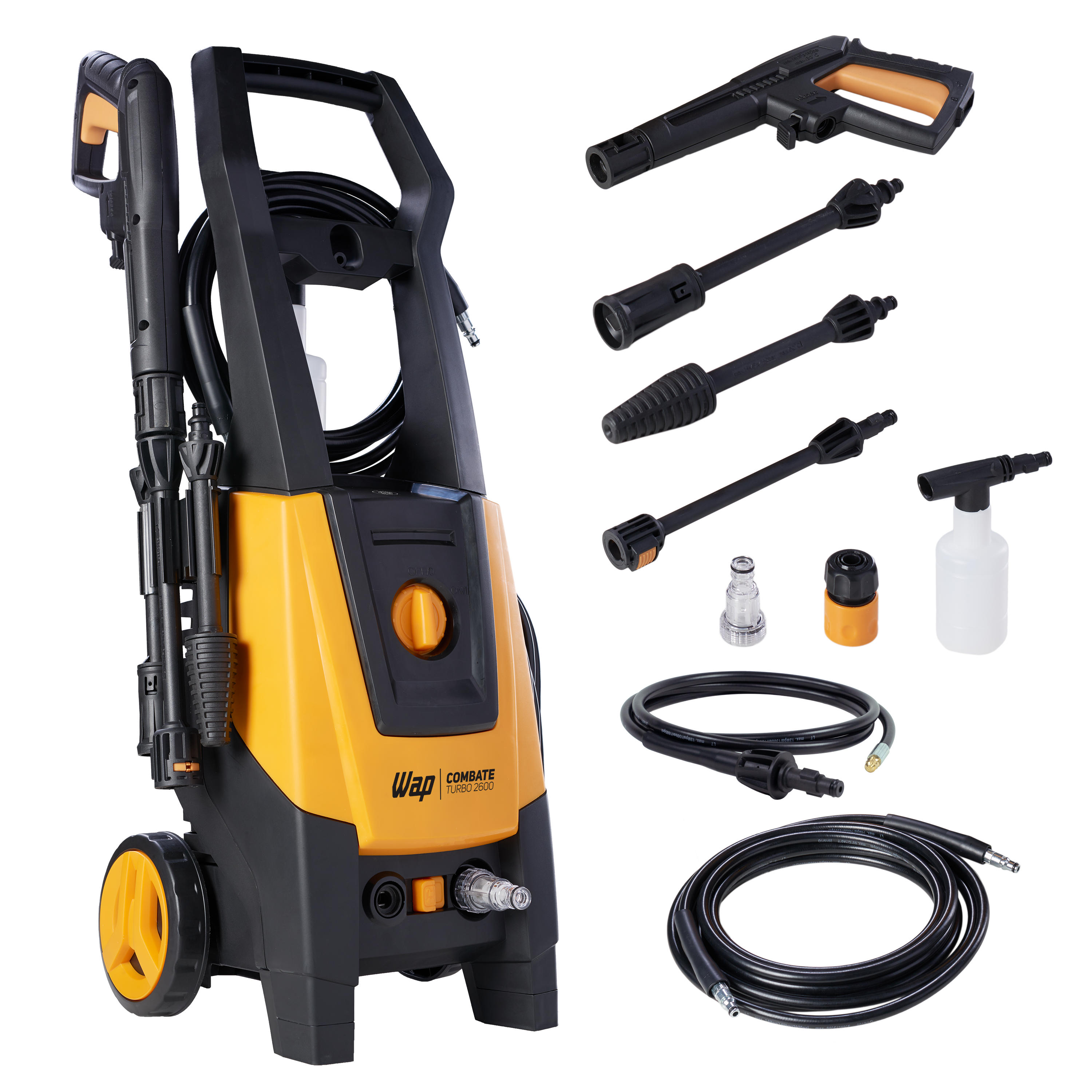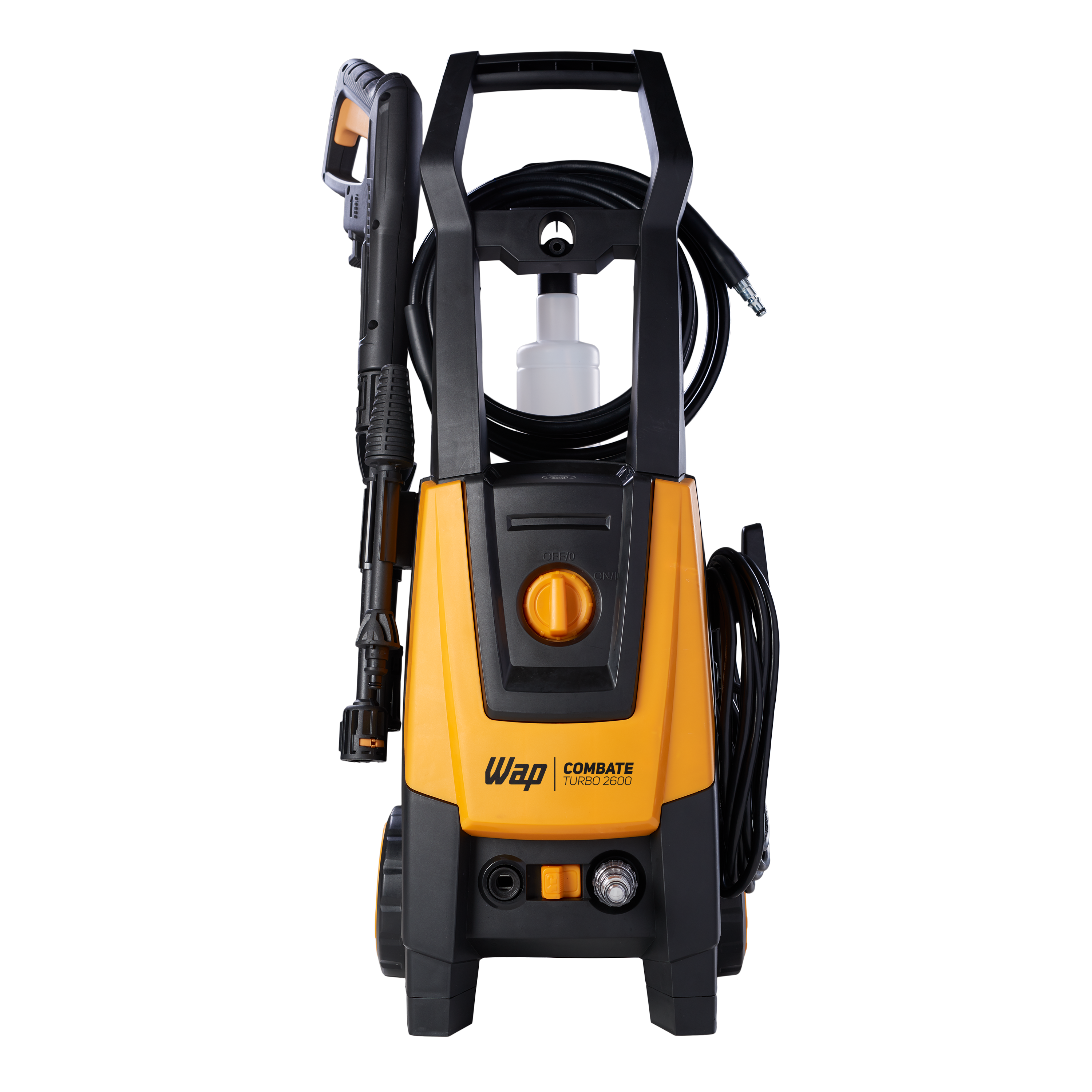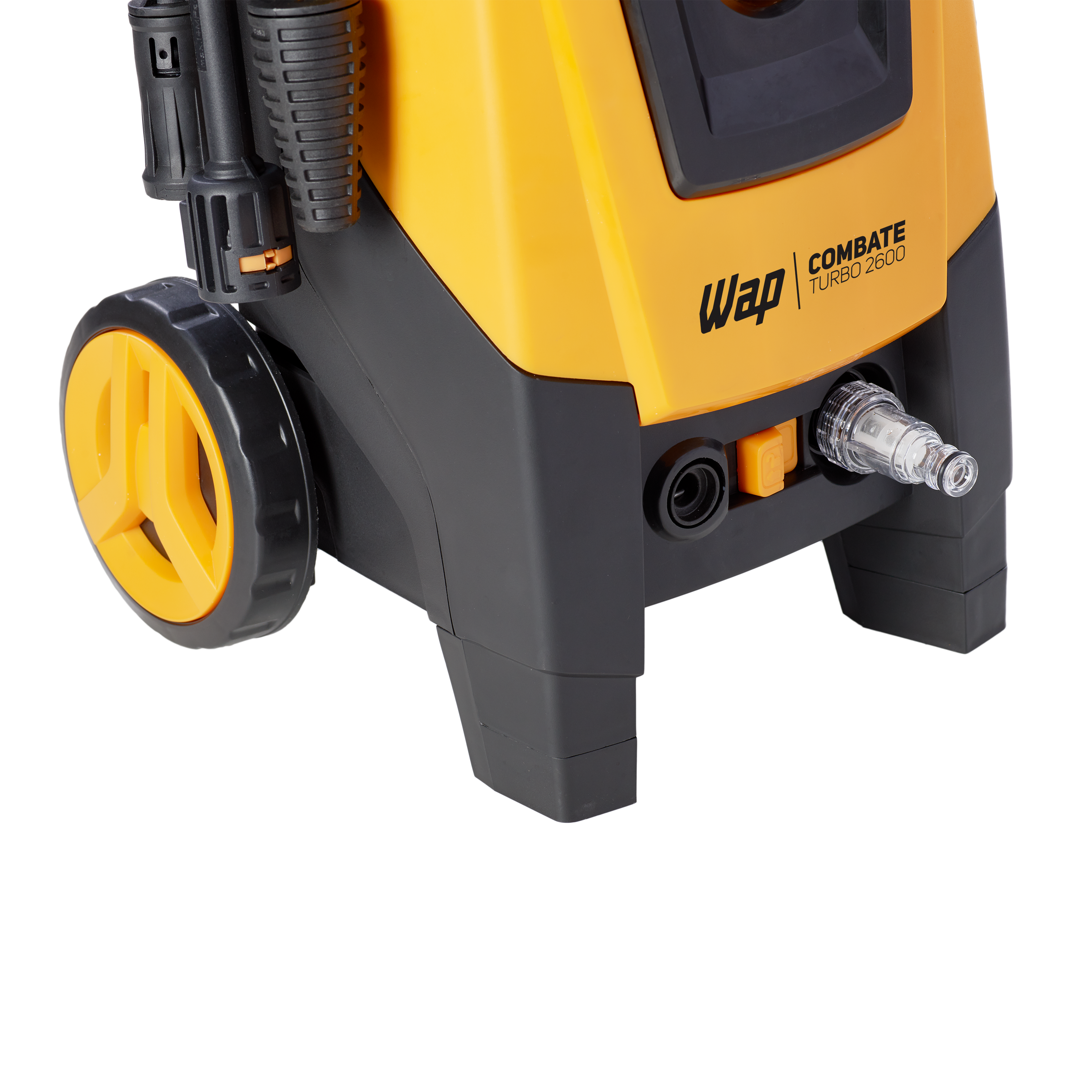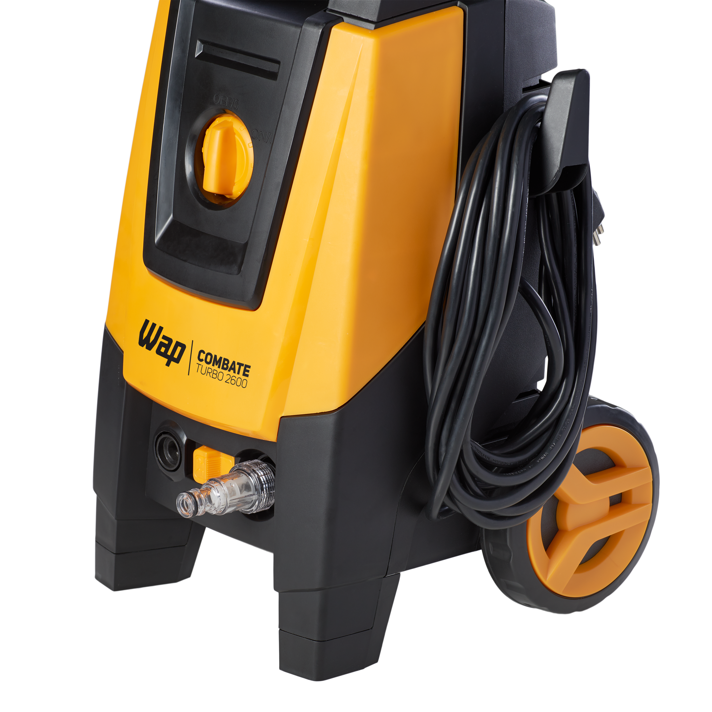 Equipada com alça e rodas que facilitam o transporte, a WAP Combate Turbo ULTRA 2600 conta com cabo elétrico de 5 metros, mangueira de alta pressão de 5 metros, mangueira desentupidora de 2 metros, trava de segurança da pistola, bico regulável (leque ou concentrado), aplicador de detergente e o sistema stop total, que corta o fluxo de água e a energia do motor ao soltar o gatilho, poupando energia e aumentando a vida útil do motor.