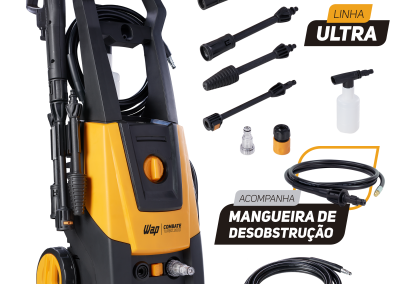 – A Desobstruidora de Alta Pressão WAP COMBATE TURBO ULTRA 2600 é uma Máquina para quem procura agilidade e praticidade para o seu dia a dia.