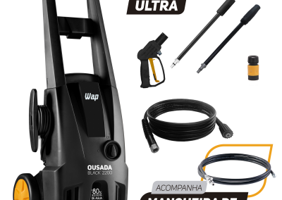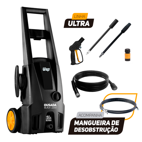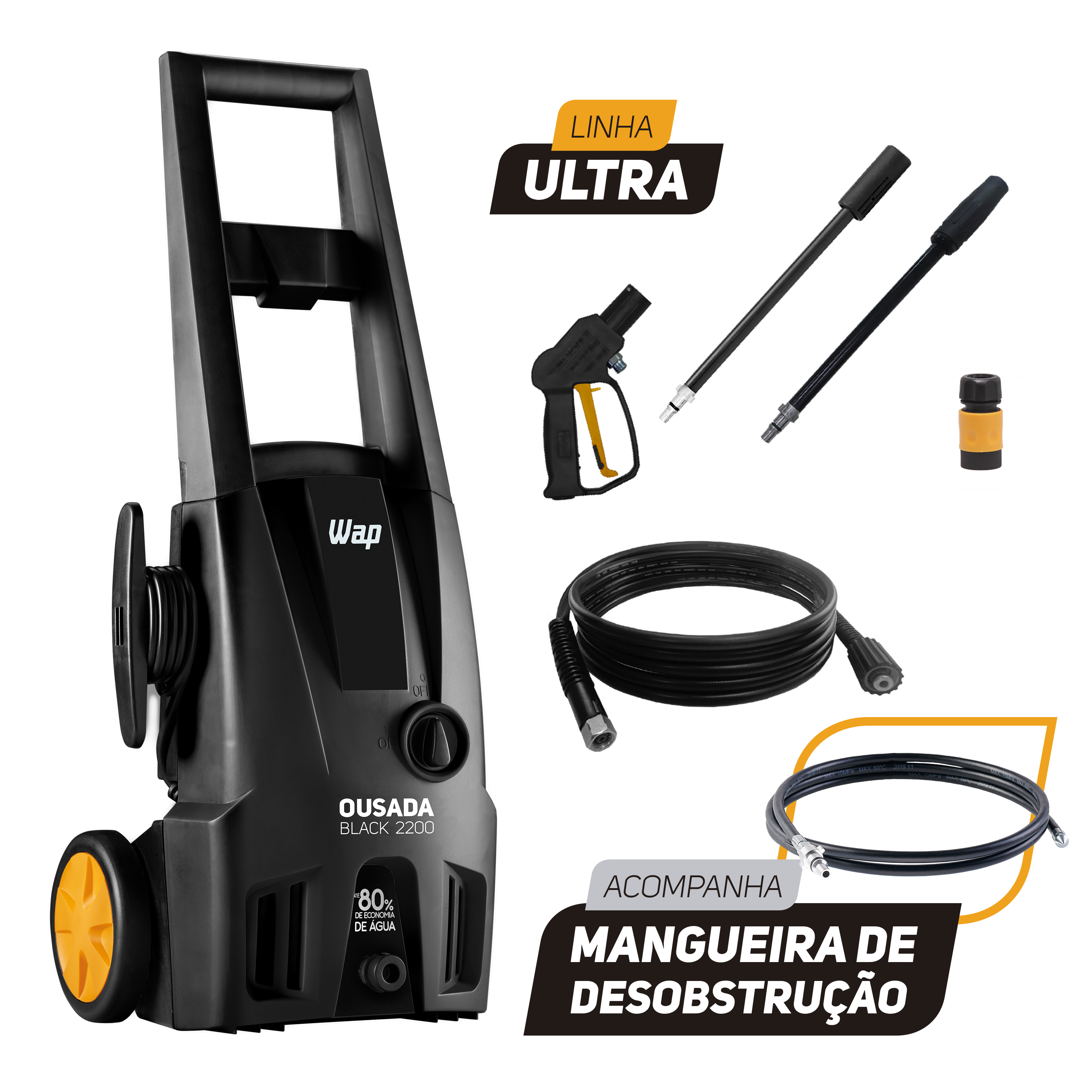– A Desobstruidora de Alta Pressão WAP OUSADA BLACK ULTRA 2200 oferece robustez, leveza, praticidade, comodidade e eficiência para as limpezas mais exigentes.