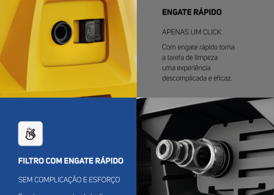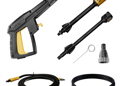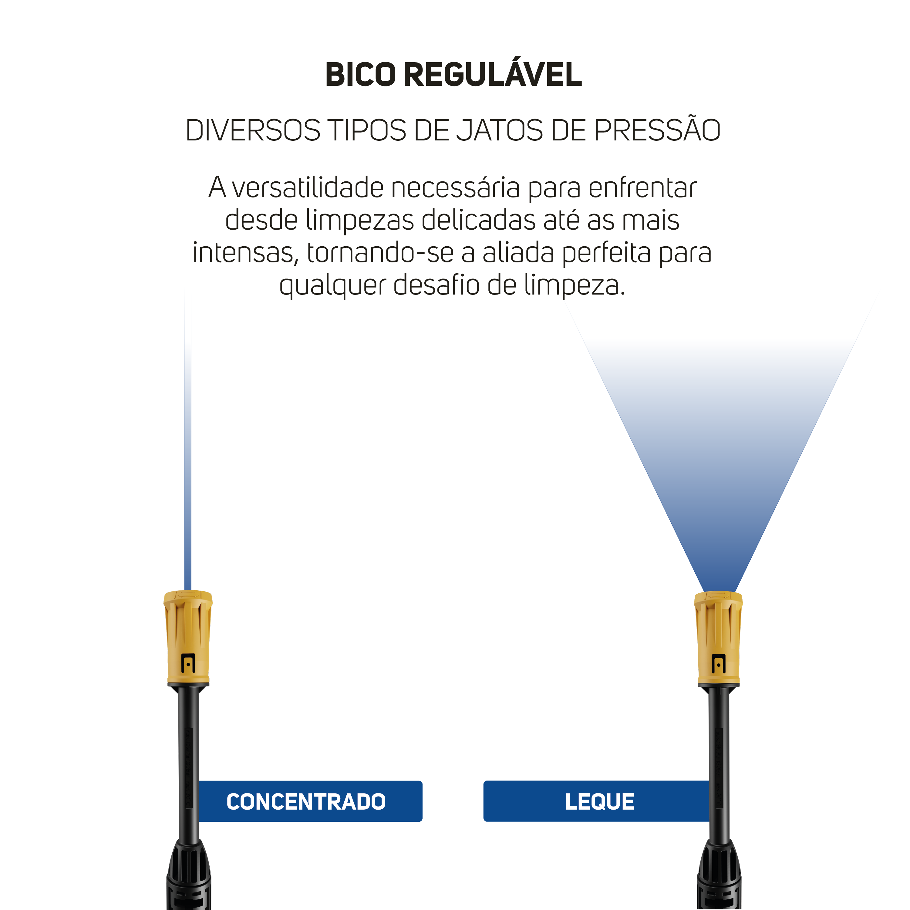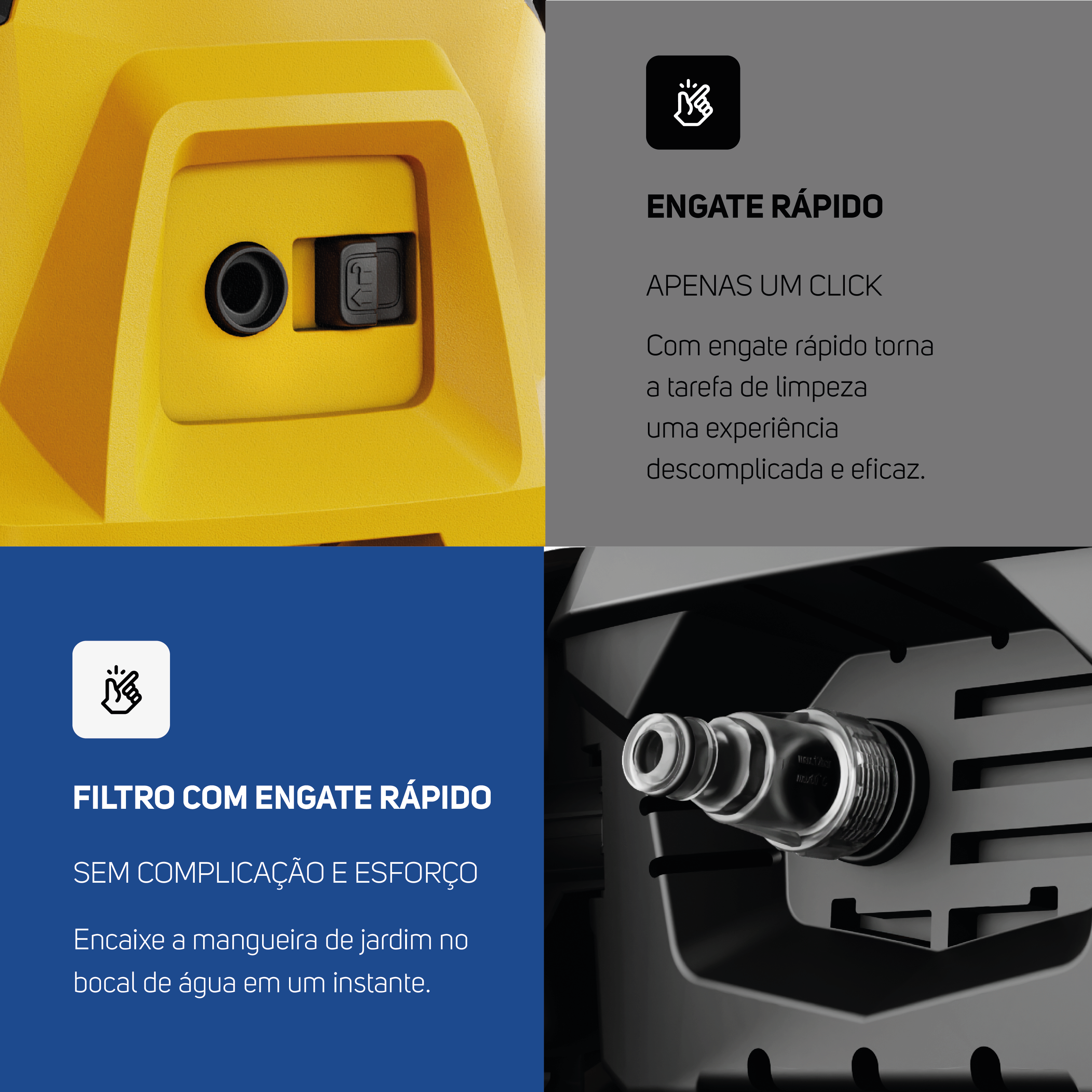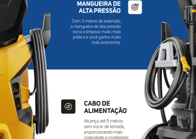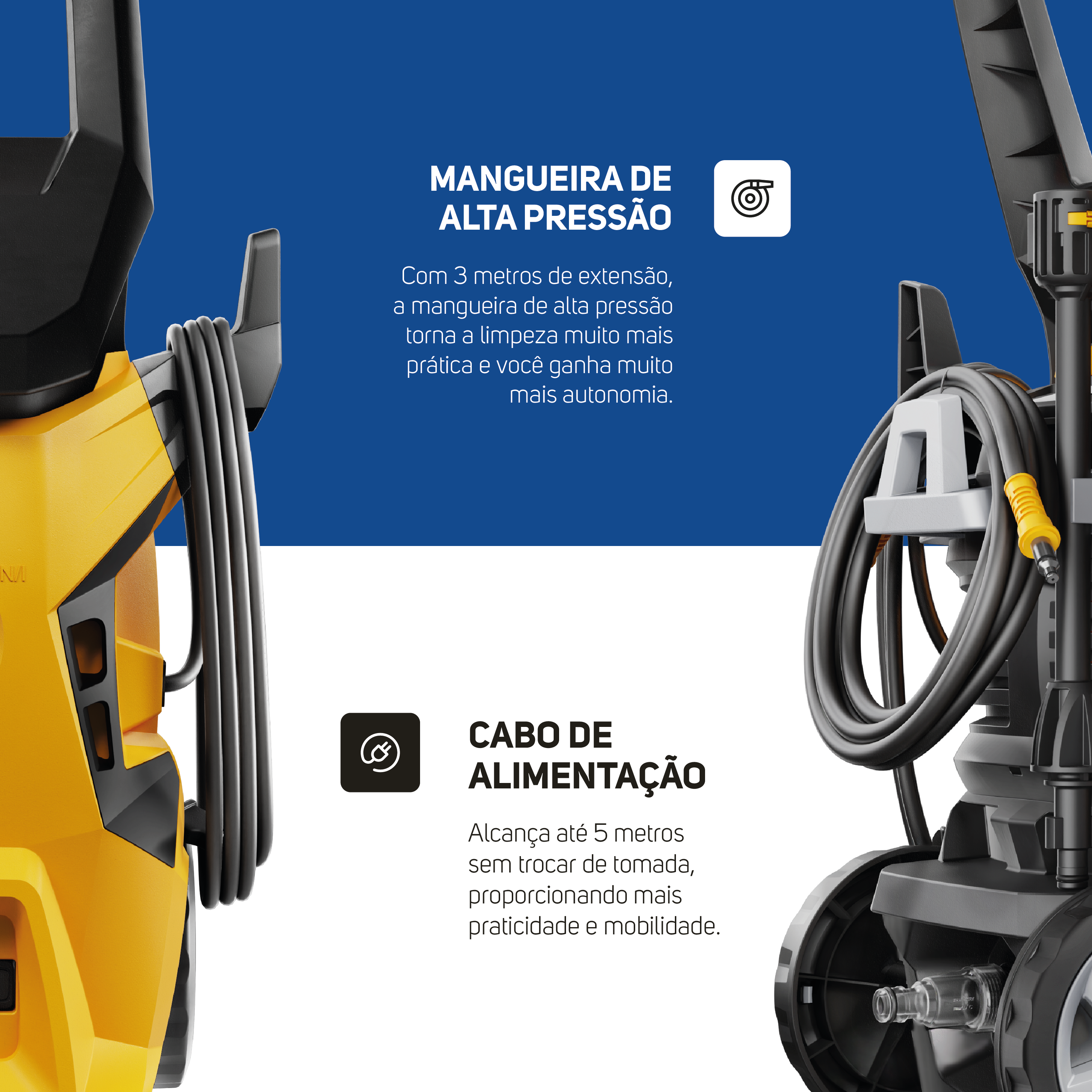 O conjunto completo de acessórios inclusos é projetado para atender a todas as suas necessidades de limpeza. Desde a pistola de alta pressão até a agulha desobstruidora, cada peça foi cuidadosamente selecionada para proporcionar a máxima eficácia. A mangueira de alta pressão de 3 metros oferece flexibilidade para alcançar até os cantos mais difíceis, além de também acompanhar um engate rápido e mangueira desentupidora de 2 metros.