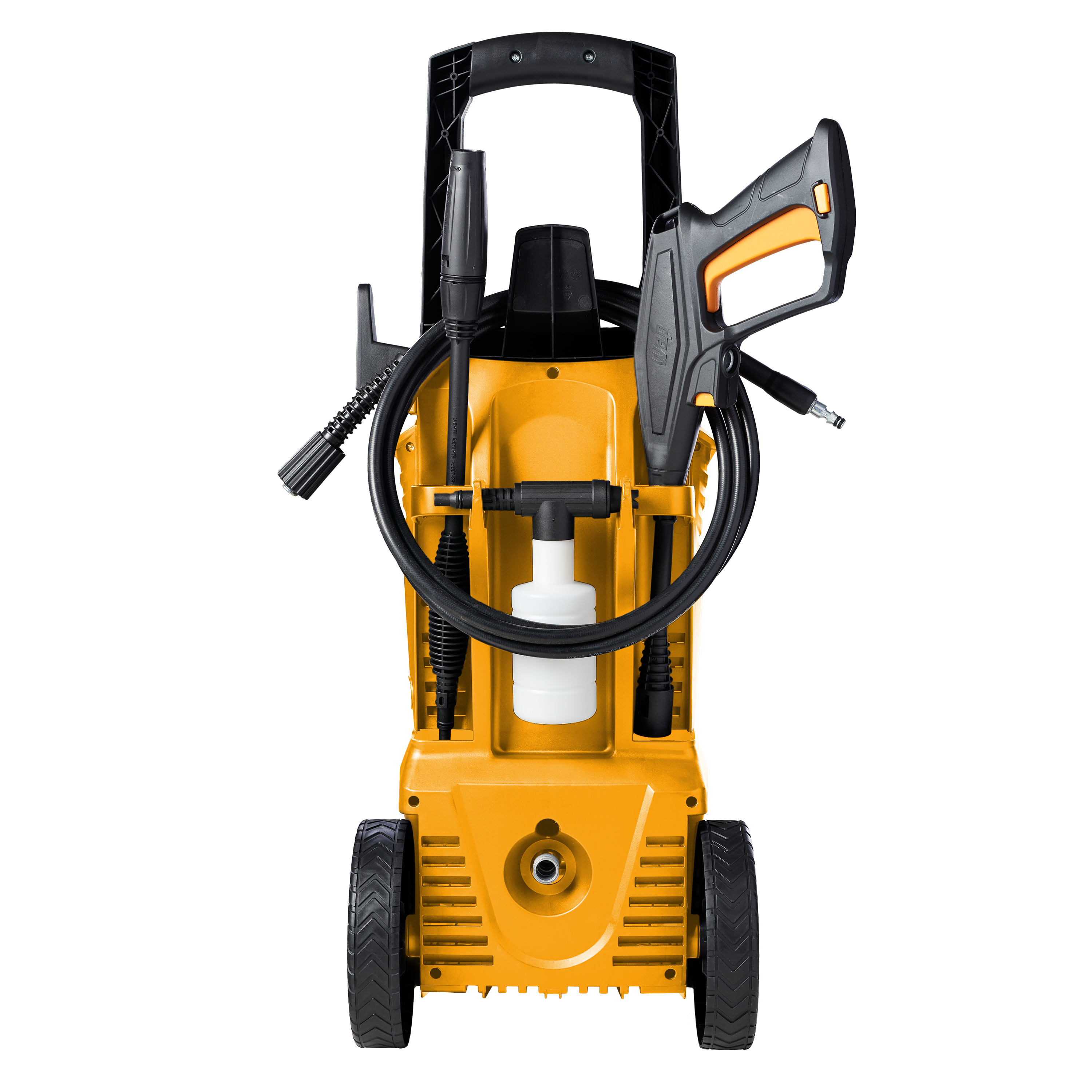 | 1 Pistola de alta pressão com trava de segurança. 1 Bico regulável (leque e concentrado). 1 Bico turbo. 1 Mangueira de alta pressão de 5 metros. 1 Mangueira desentupidora de 2 metros. 1 Aplicador de detergente. 1 Engate rápido. 1 Agulha de limpeza do bico. |