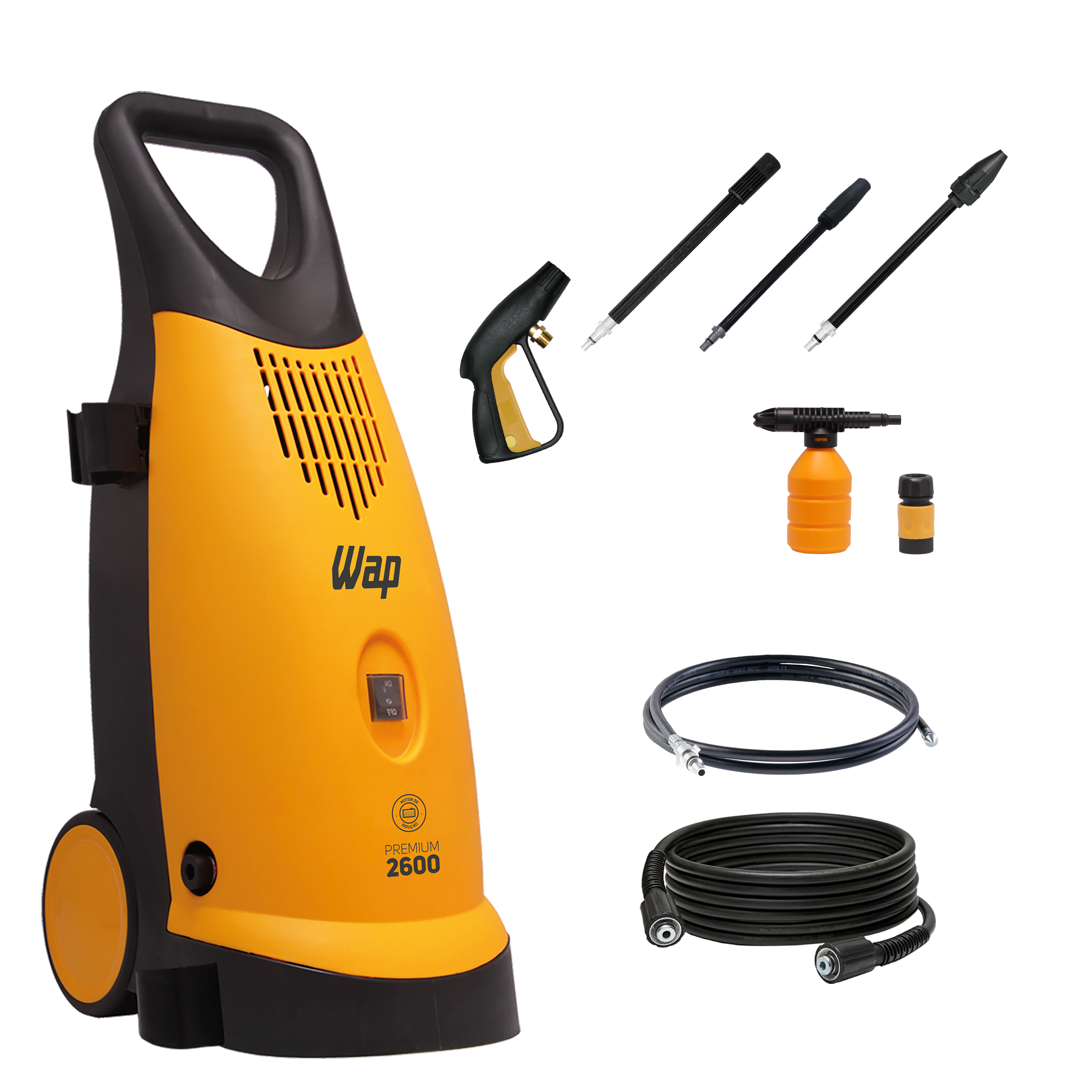 A Desobstruidora de Alta Pressão WAP Premium ULTRA 2600 conta com cabo elétrico de 5 metros e mangueira de alta pressão com trama de aço de 5 metros que permitem cobrir uma grande área sem precisar locomover a máquina. Além de desentupir canos, calhas e tubulações com facilidade utilizando jato de água! Vem com trava de segurança da pistola, bico regulável (concentrado ou leque), aplicador de detergente e o sistema stop total, que corta o fluxo de água e a energia do motor ao soltar o gatilho, poupando energia e aumentando a vida útil do motor.