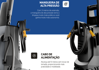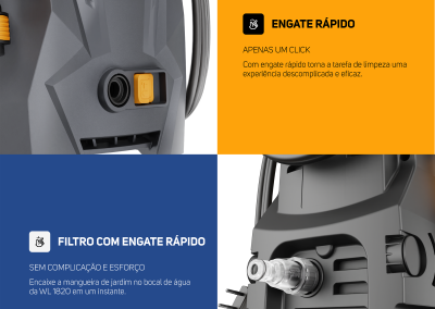 O conjunto completo de acessórios da Desobstruidora e Lavadora WAP WL 1820 ULTRA garante que você esteja equipado para lidar com qualquer tarefa de limpeza. A pistola de alta pressão proporciona um controle preciso, enquanto a baioneta funciona como um extensor da pistola para garantir a segurança do usuário ao utilizar o produto. O bico regulável permite que você mude o tipo do jato para concentrado ou leque, conforme a necessidade da superfície. Além disso, a mangueira de alta pressão de 3 metros oferece uma ampla área de alcance, garantindo flexibilidade durante a limpeza, também conta com um engate rápido e mangueira desentupidora de 2 metros.