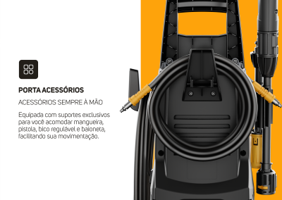 - É uma Máquina que garante potência e agilidade na limpeza diária, além de desentupir canos, calhas e tubulações com facilidade utilizando jato de água.