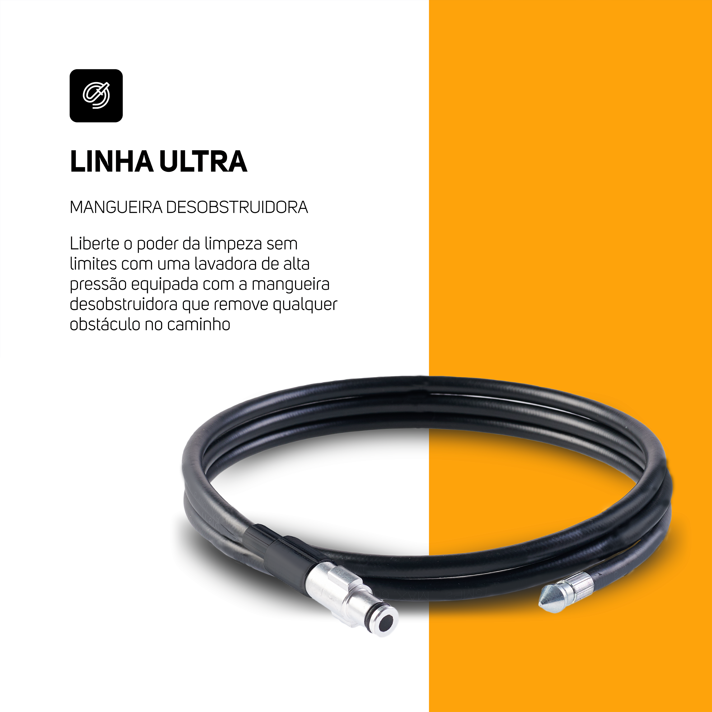 - Acompanha exclusiva Mangueira de Desobstrução de 2 metros. Mangueira resistente, flexível e durável que facilita os trabalhos de desentupimento.