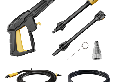 O kit completo inclui acessórios essenciais, incluindo pistola de alta pressão, baioneta, bico regulável, mangueira de alta pressão de 4 metros, mangueira desentupidora de 2 metros, engate rápido e agulha desobstruidora. Essa variedade permite uma adaptação perfeita às diferentes necessidades de limpeza que você possa encontrar.