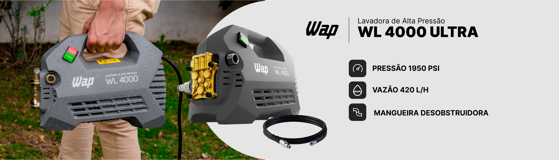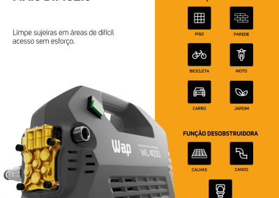 - 2 em 1, o Dobro de Vantagens! Desobstruidora e Lavadora de Alta Pressão WAP linha ULTRA.