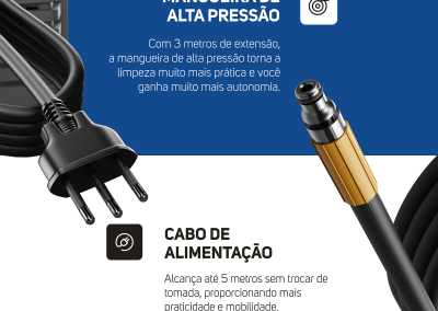 Além disso, a economia de água é uma grande vantagem. Enquanto uma mangueira convencional pode consumir até 30 litros de água por minuto, essa lavadora de alta pressão gasta apenas 7 litros por minuto, proporcionando resultados de limpeza impressionantes, sem desperdício.