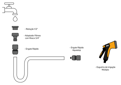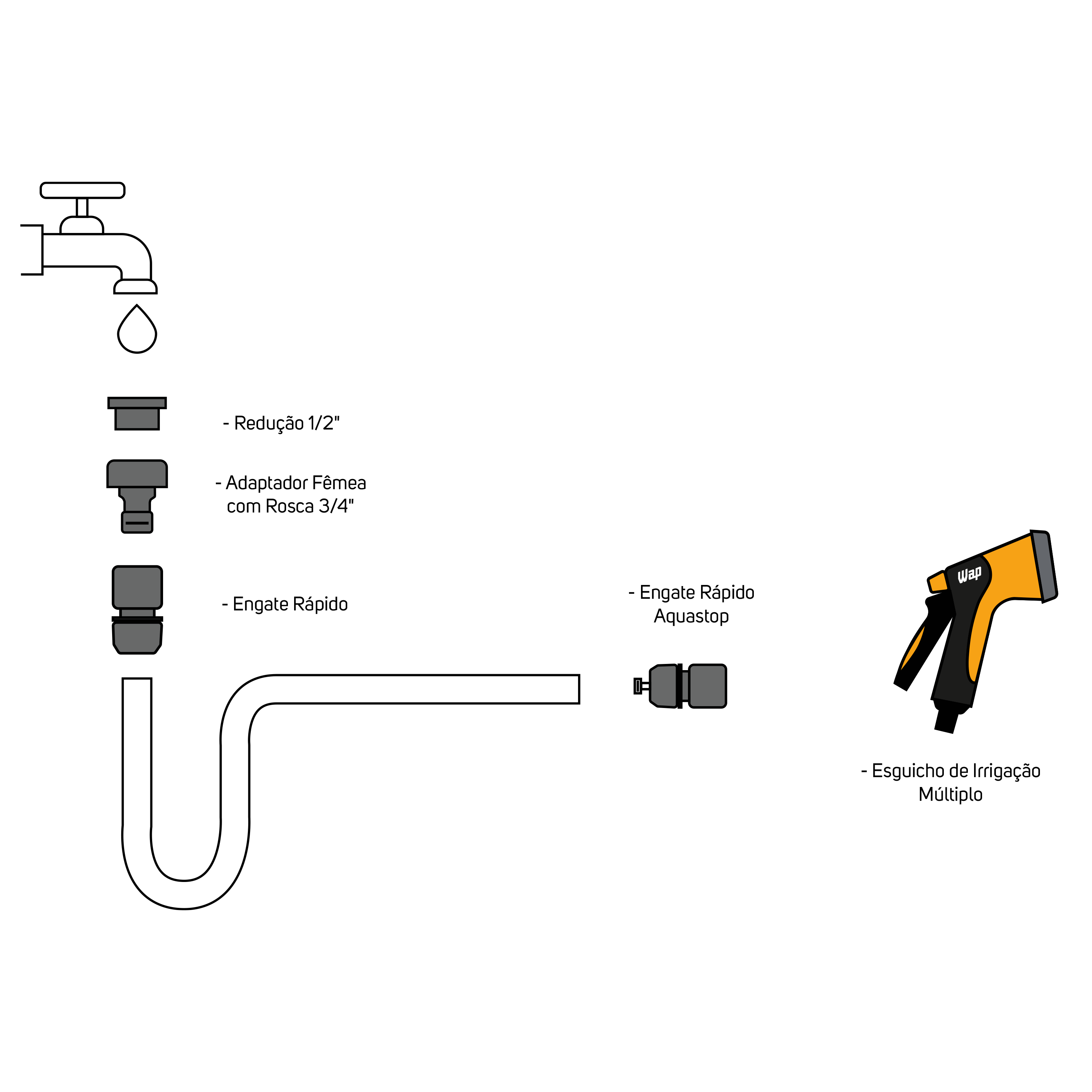 | CONTEÚDO DA EMBALAGEM: | Esguicho Irrigação Múltiplo WAP GEIM01 + Acessórios + Manual de Instruções. |