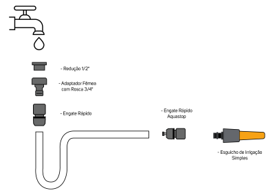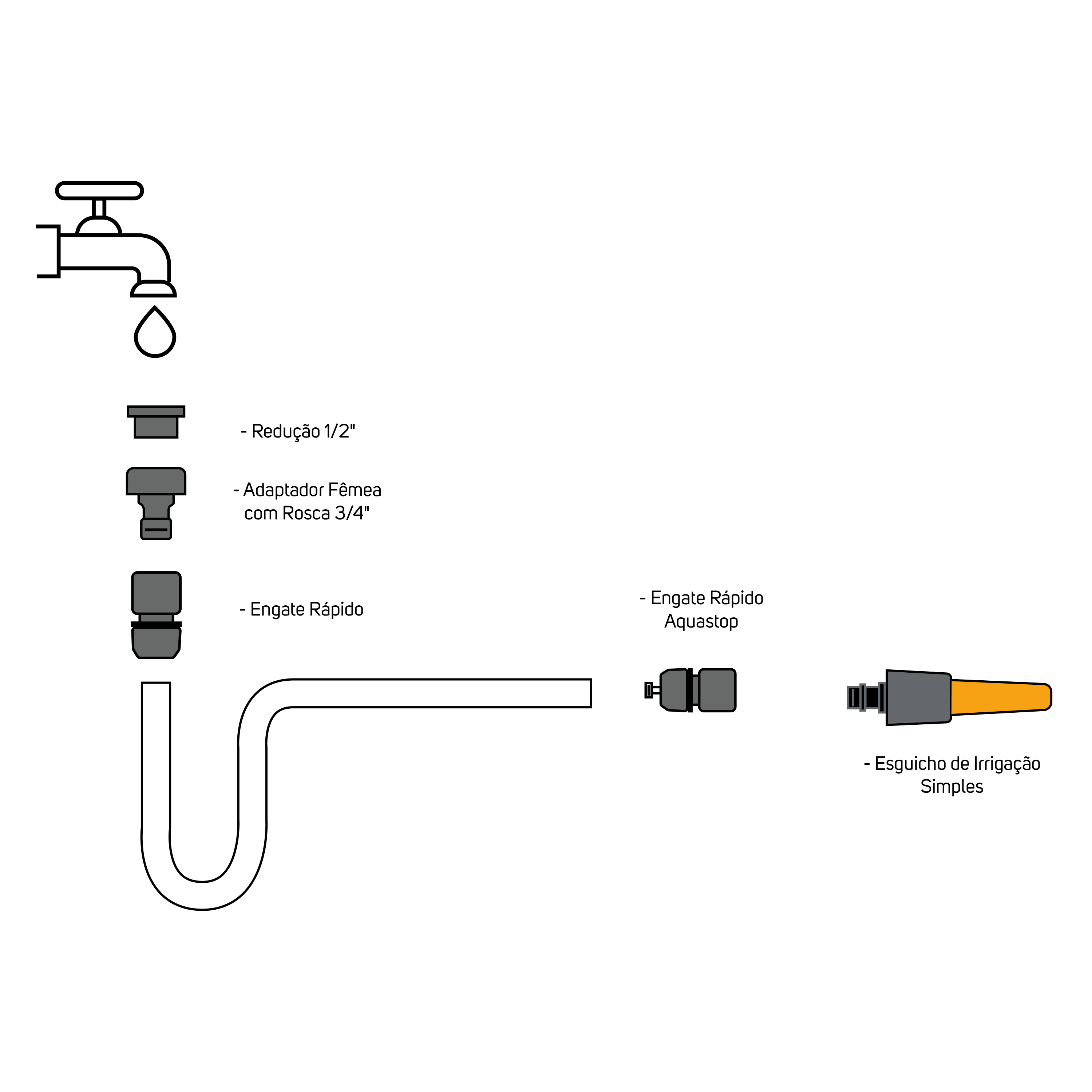 Possui conexão de engate rápido para mangueira tipo 1/2", sem necessidade de ferramentas ou braçadeira para instalação.