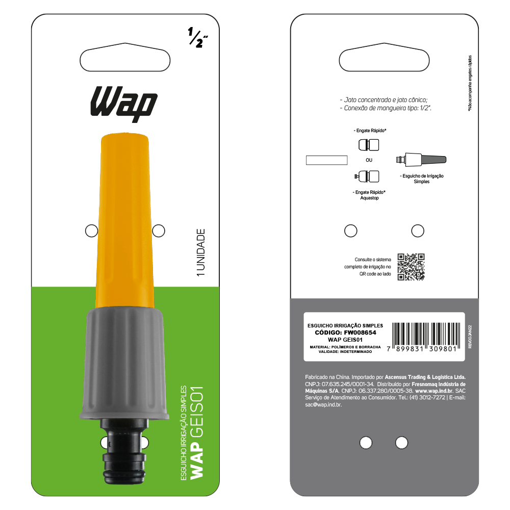| CONTEÚDO DA EMBALAGEM: | Esguicho Irrigação Simples WAP GEIS01 + Acessórios + Manual de Instruções. |