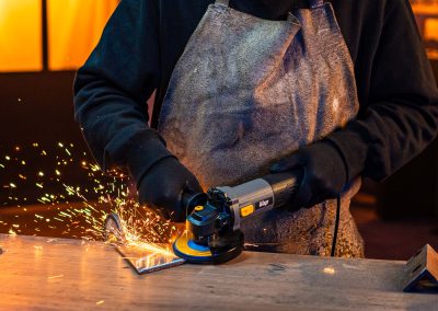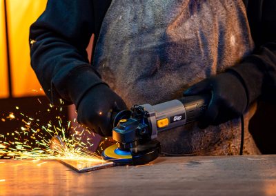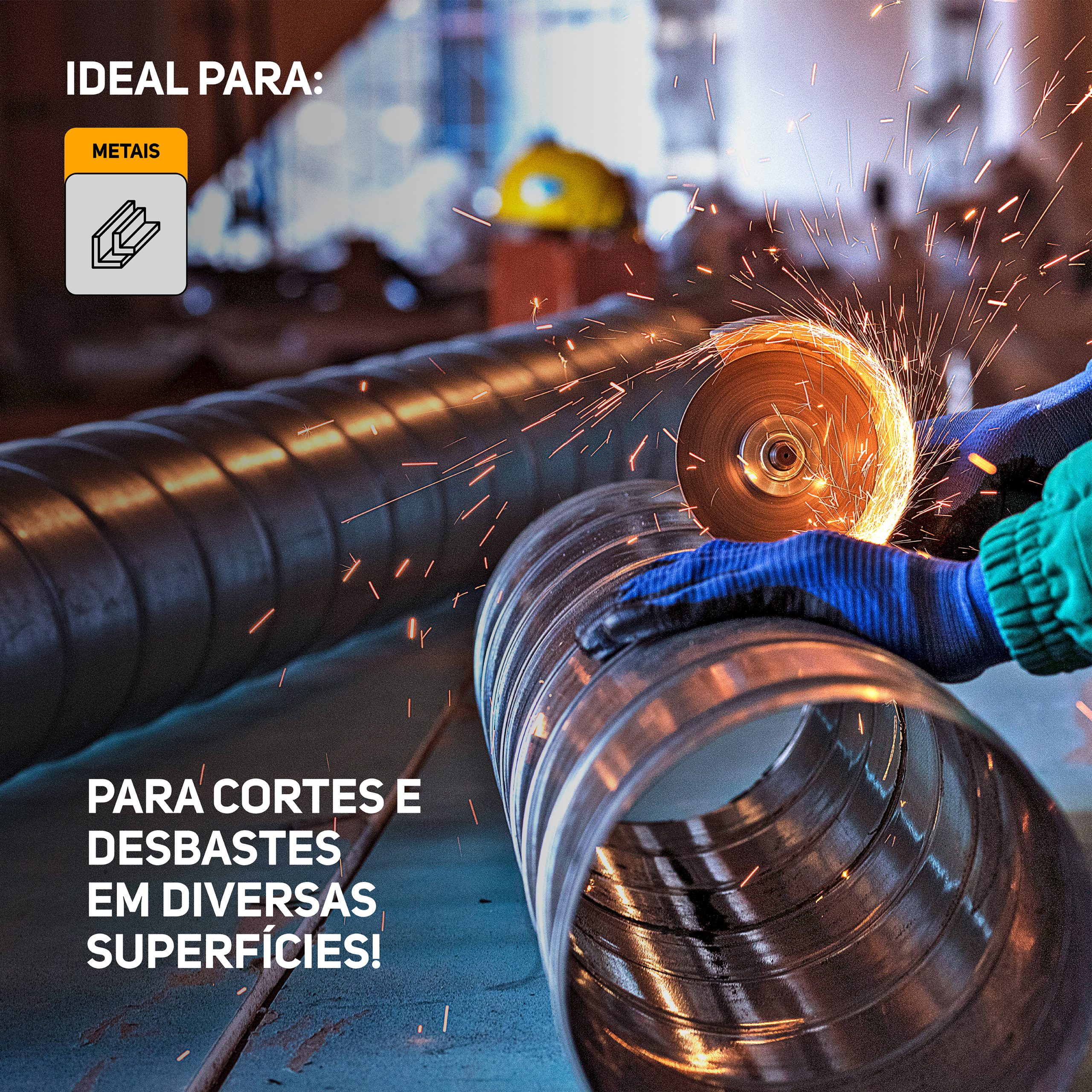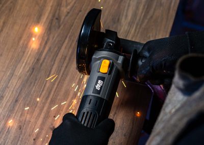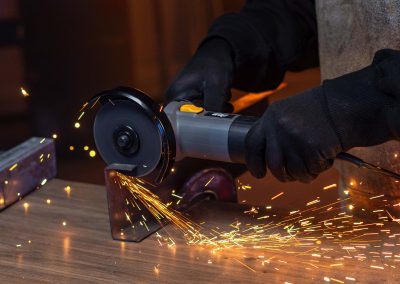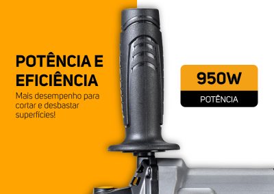 - Com 950W de potência, a esmerilhadeira angular realizar cortes e desbastes em diversos materiais.